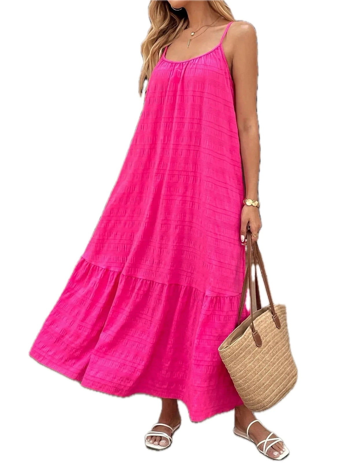 Women's Scoop Neck Cami Maxi Dress with Tiered Ruffles and Tie Details 100% Polyester Fabric for Summer Everyday