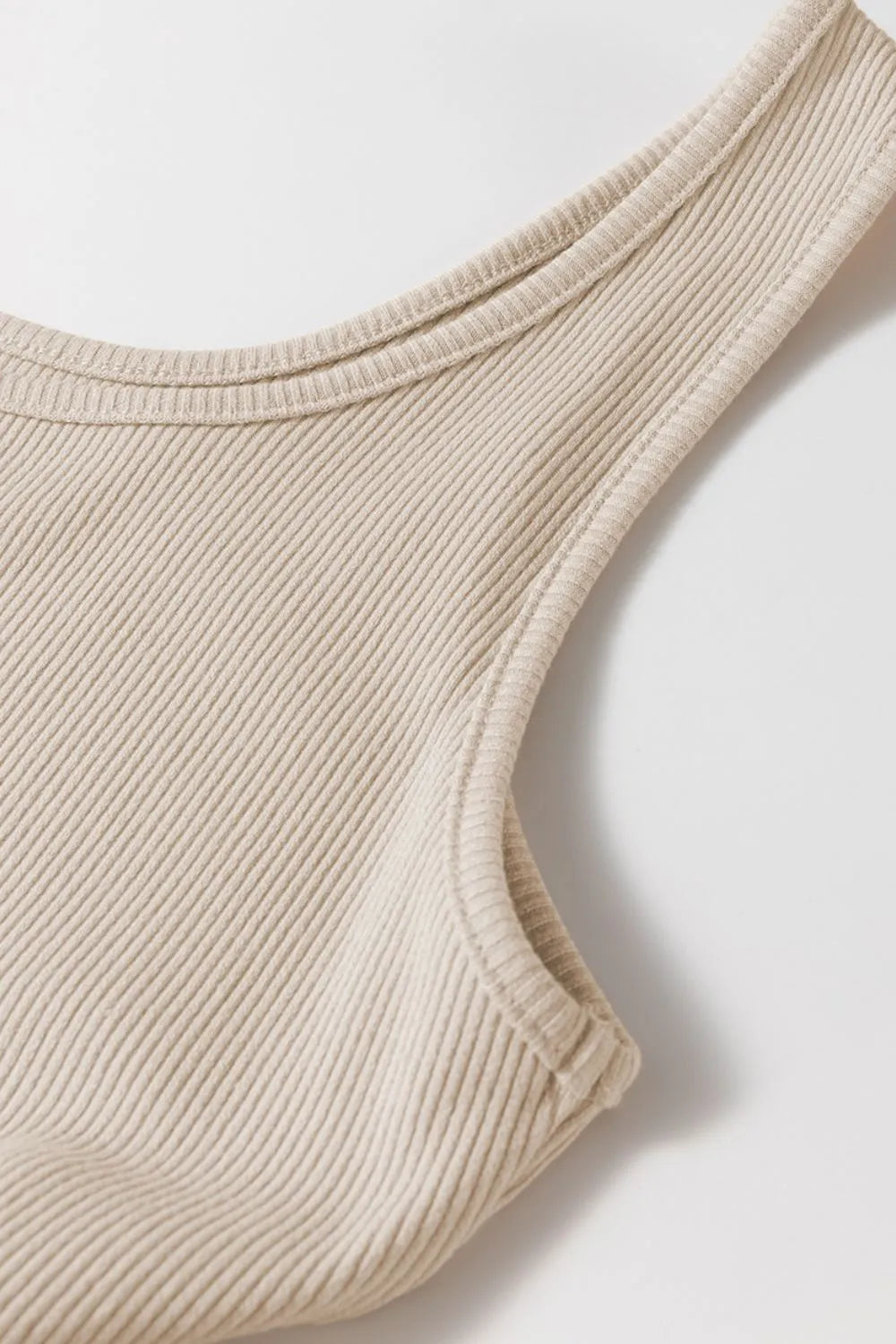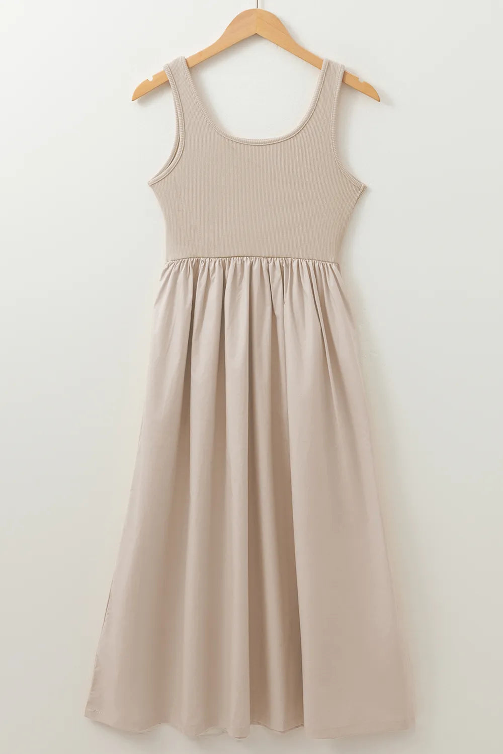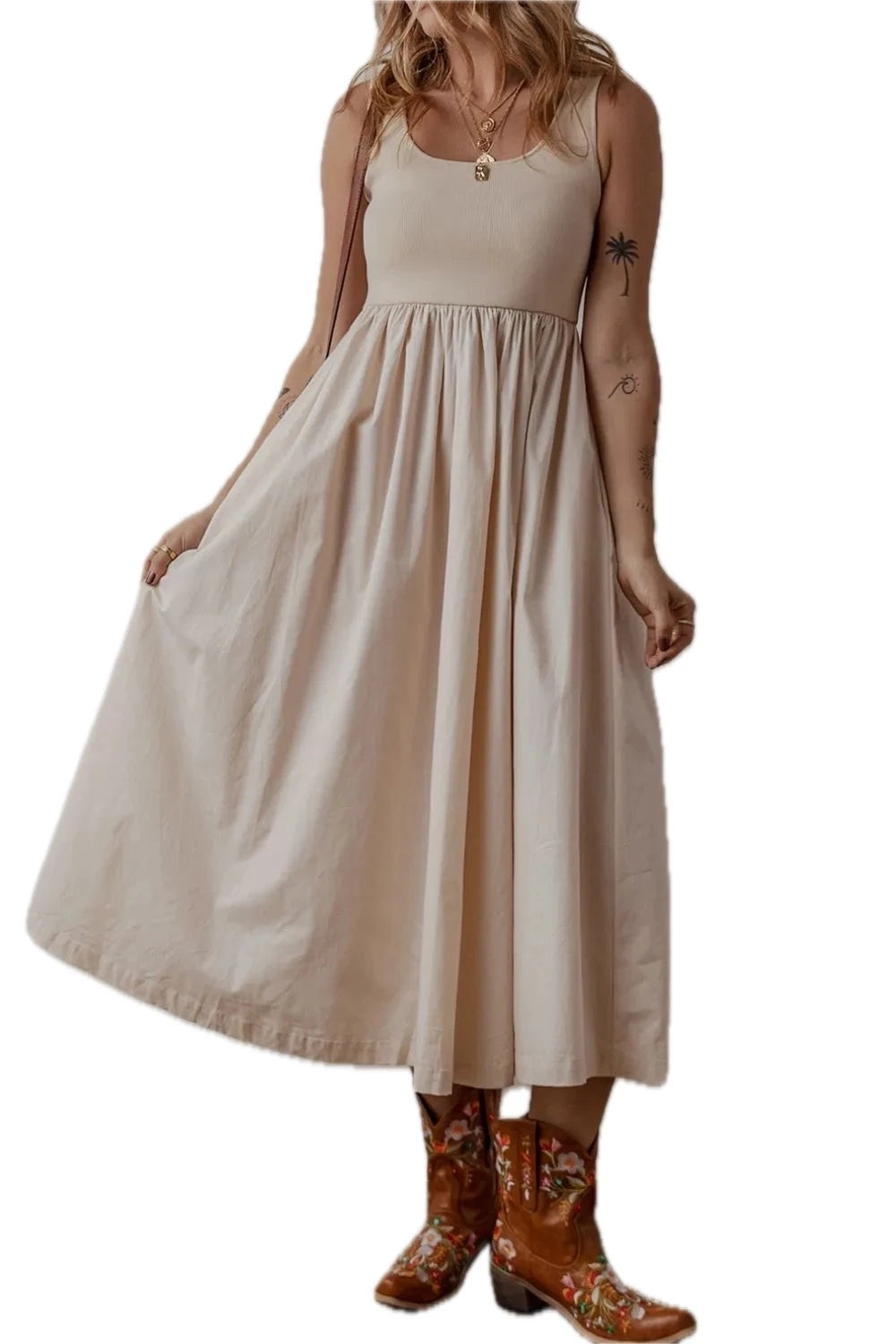 Womens Scoop Neck Ribbed Bodice Sleeveless Midi Tank Dress 100% Cotton Fabric Soft Breathable Everyday Comfort
