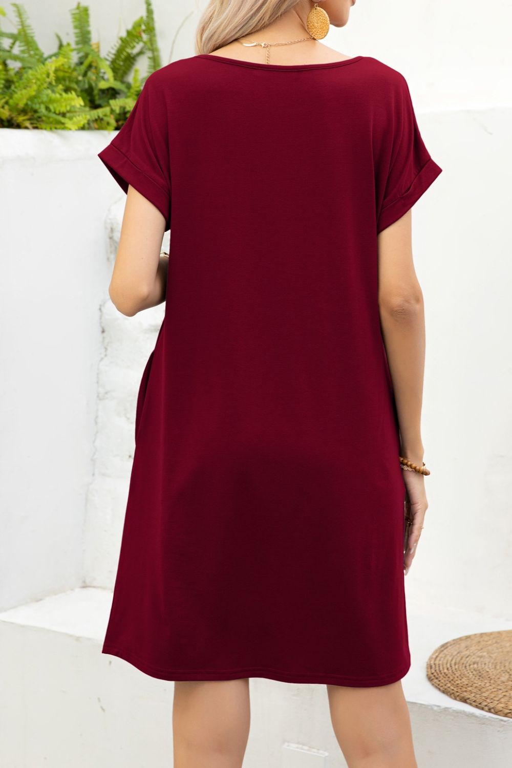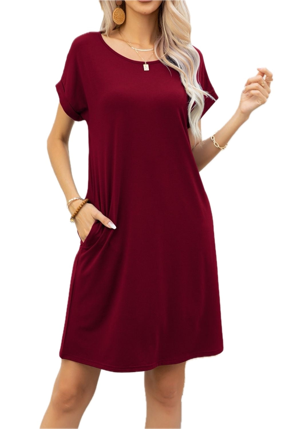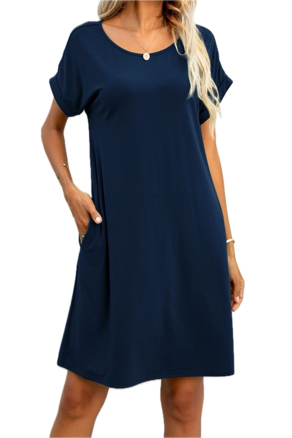 Women's Scoop Neck Short Sleeve Pocket Dress 65% Polyester 30% Rayon 5% Spandex Everyday Comfort Casual Everyday Wear