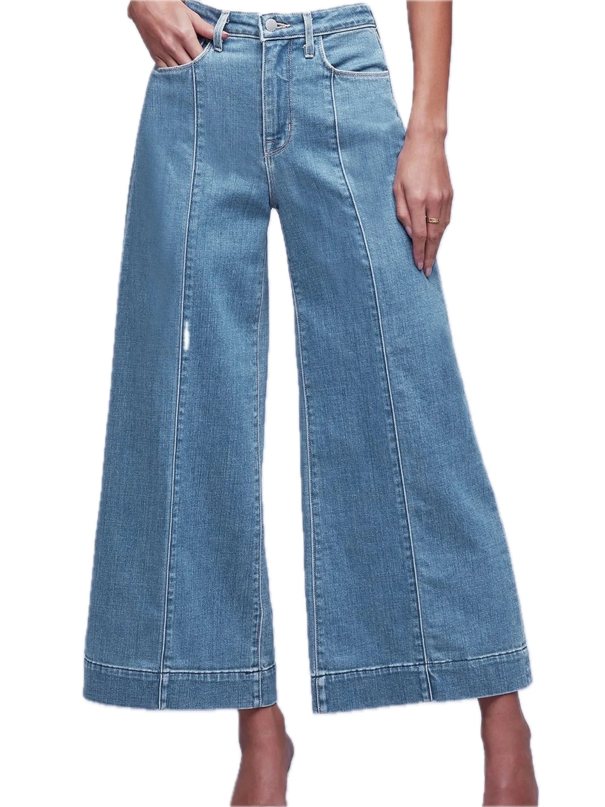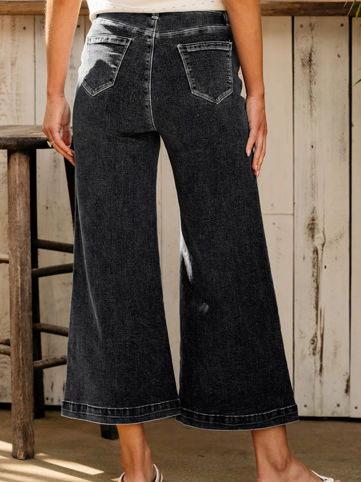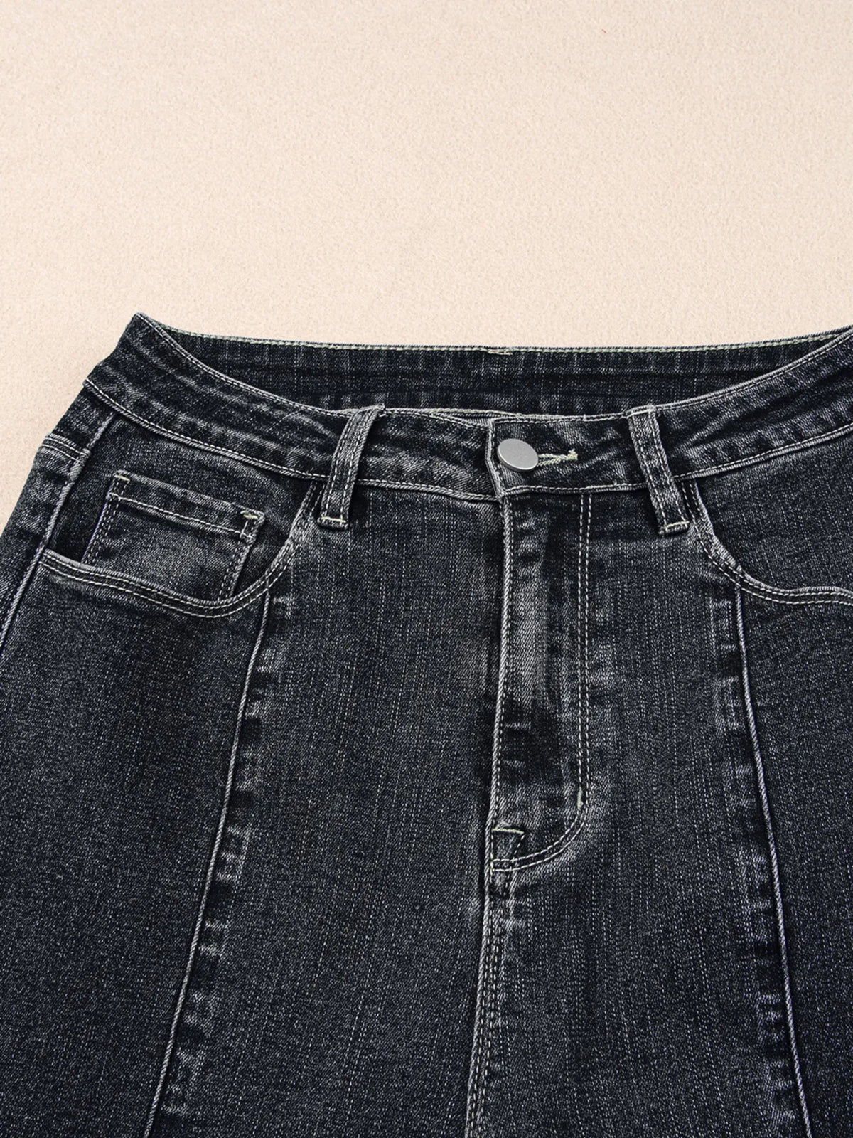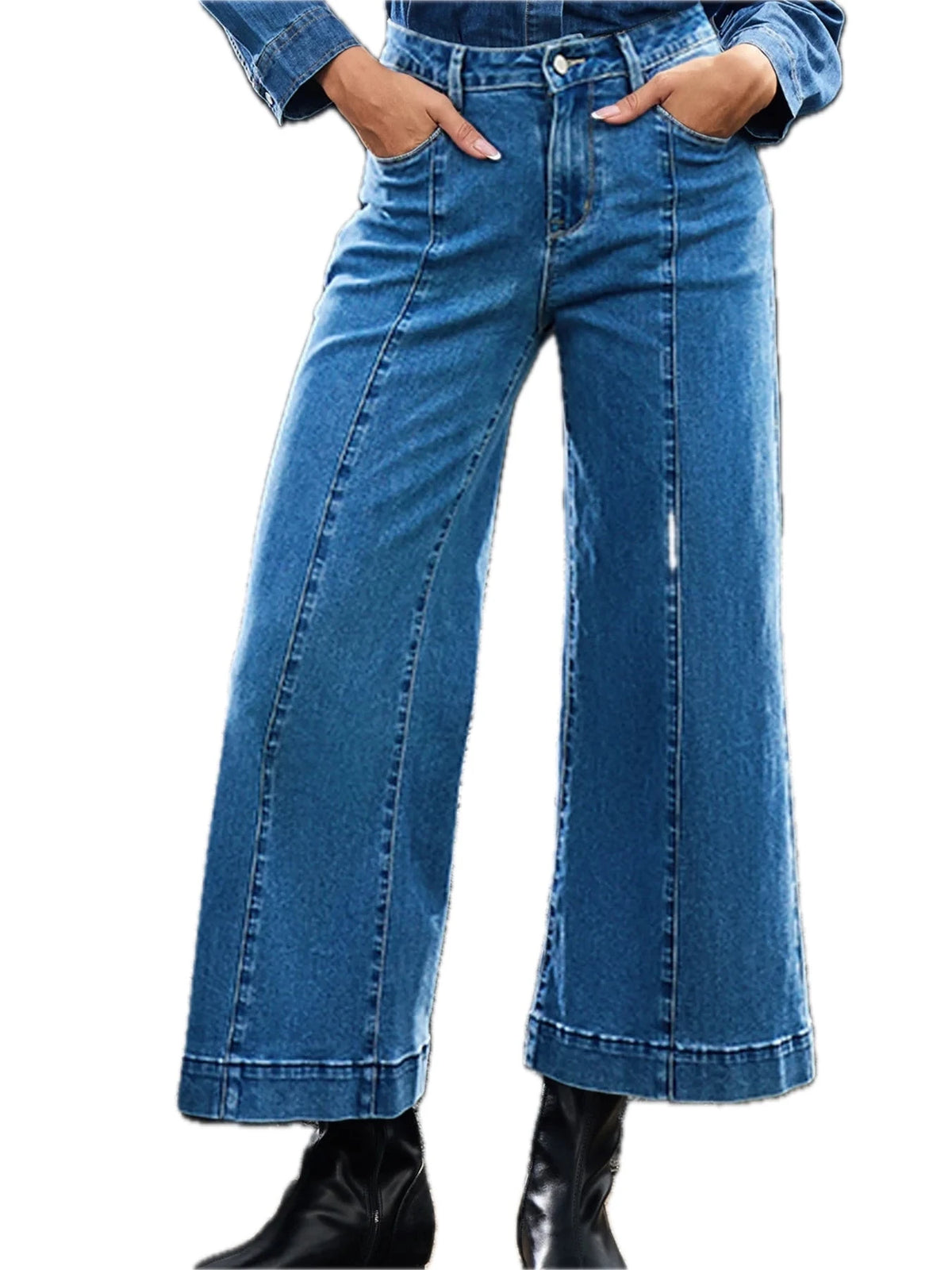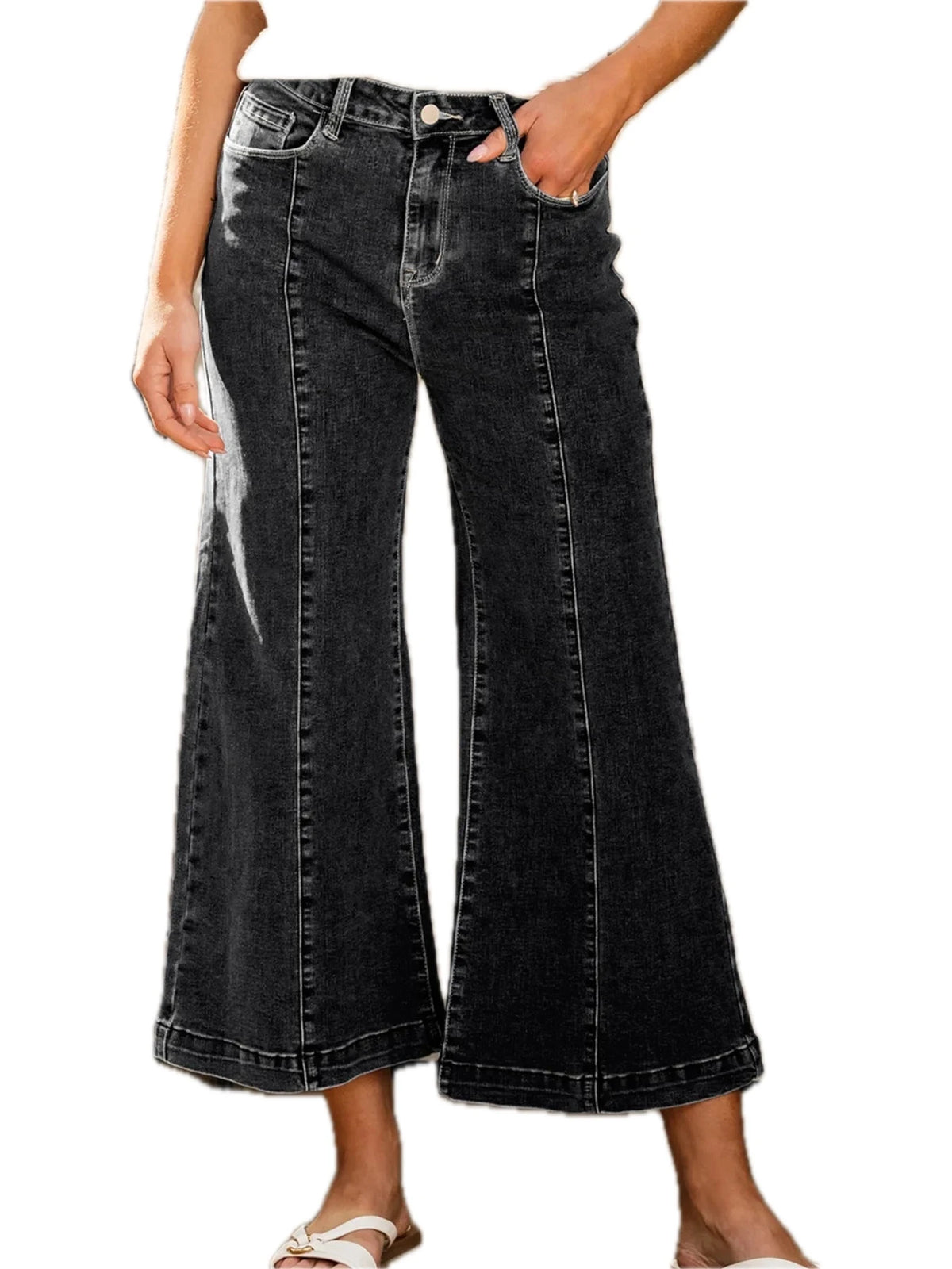 Womens Flared Bottom Ankle Length Denim Jeans with Seam Detail Slightly Stretchy Durable Modern Fit Trendy Casual Pants