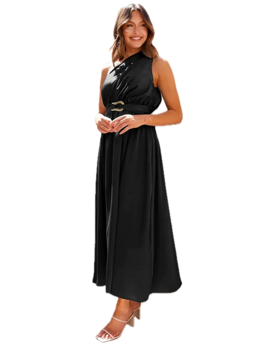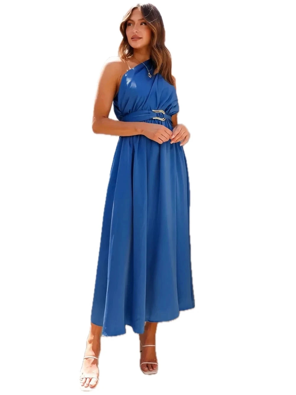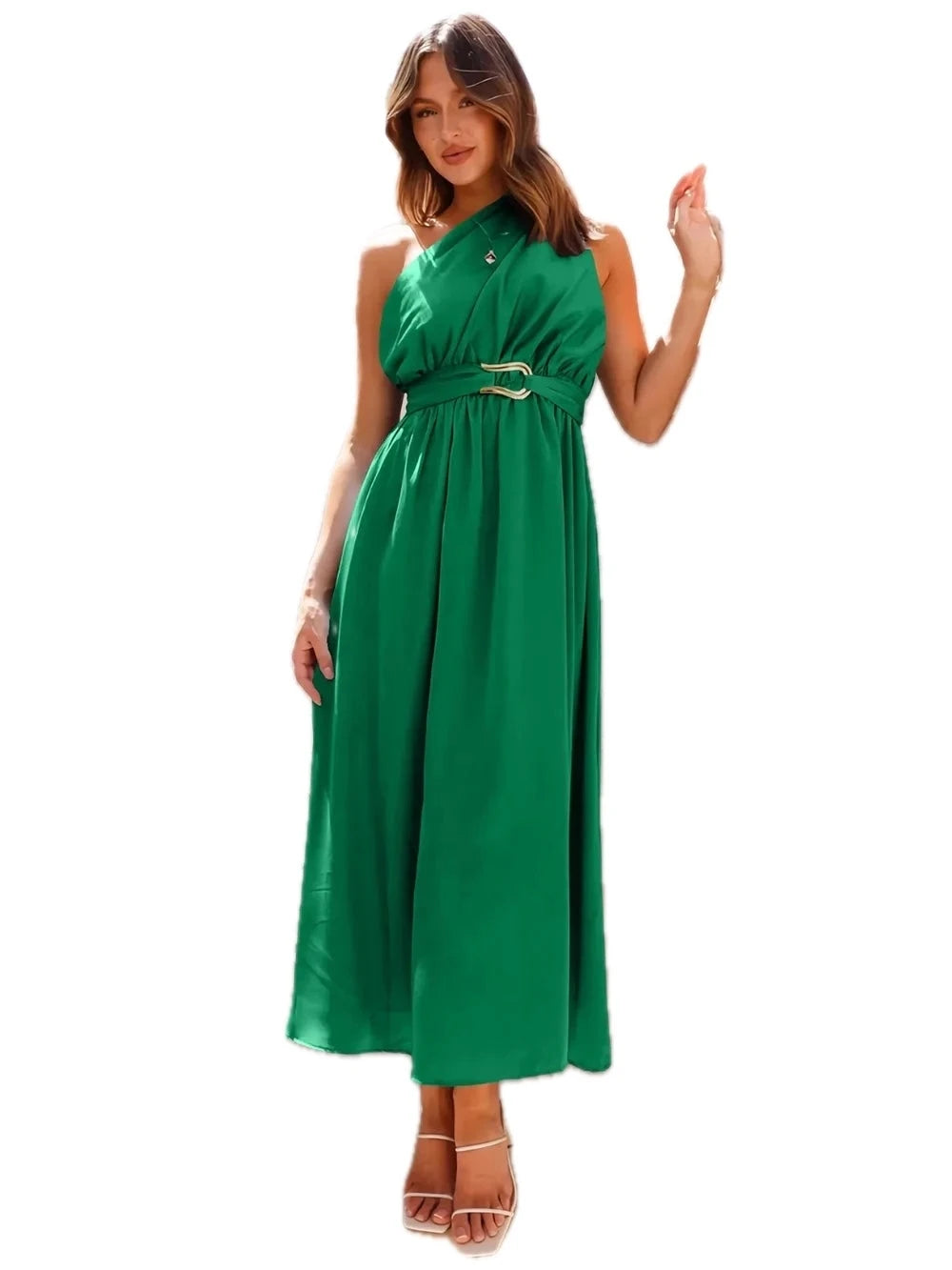 Women's Single Shoulder Midi Dress 100% Polyester Fabric with Basic Style and Opaque Look for Everyday and Parties