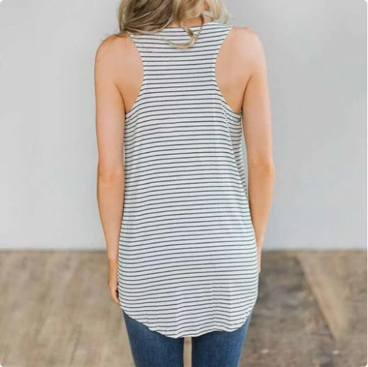Lightweight and breathable, this men’s sleeveless V-neck T-shirt in black and white stripes is designed for warm-weather days, workouts, and casual layering. Its slim, athletic silhouette pairs easily with shorts or jeans for a modern, minimalist look.