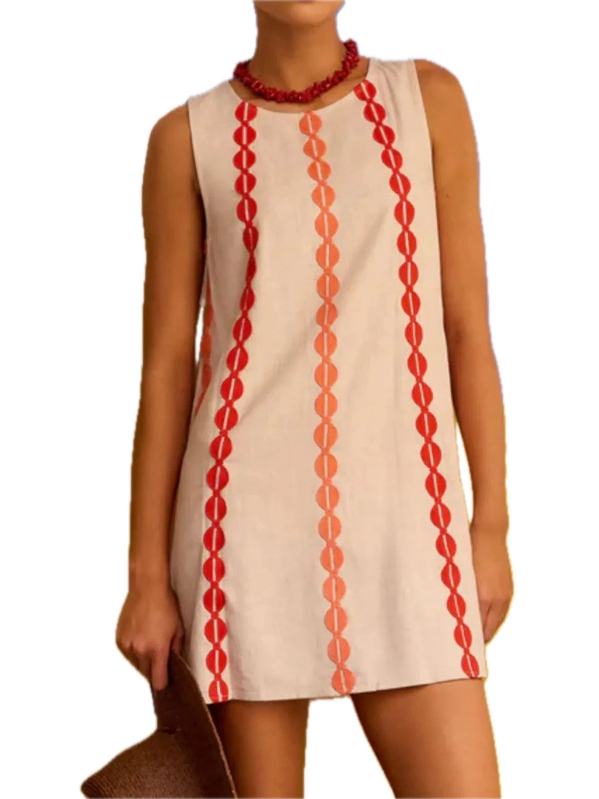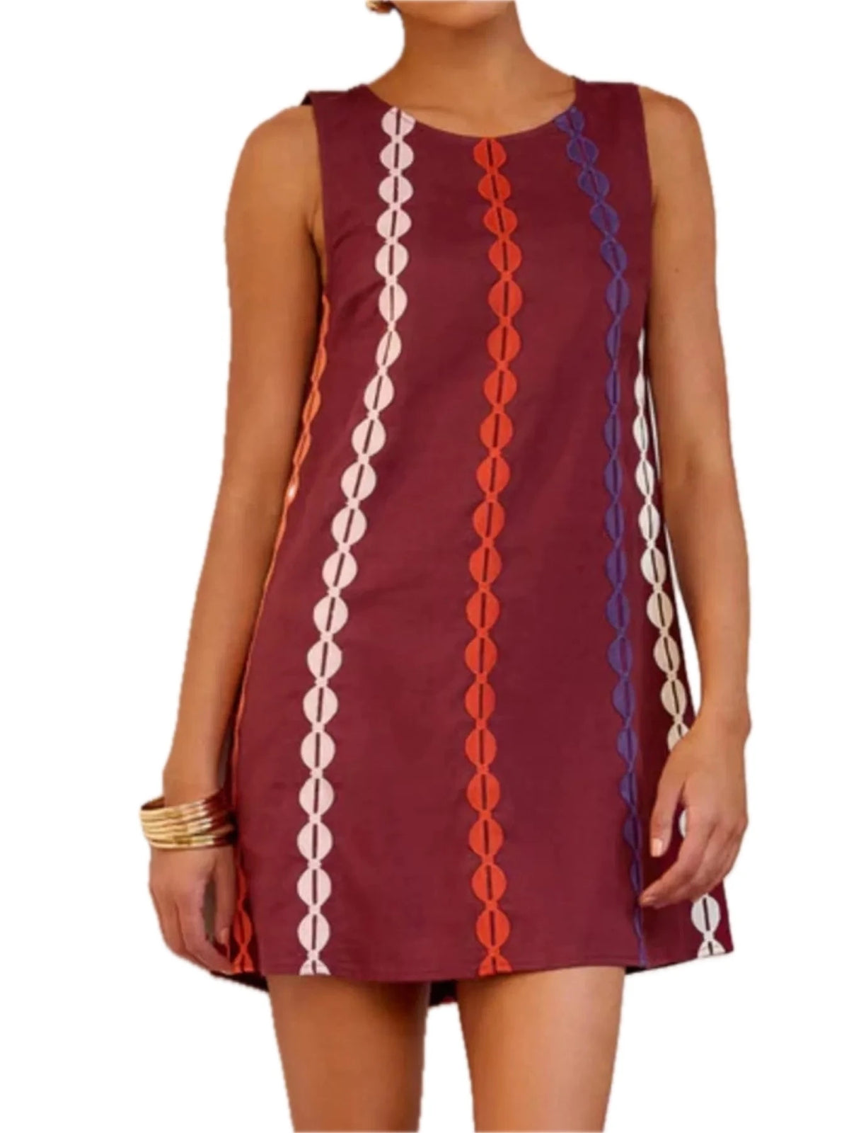 Women's Sleeveless Geometric Print Mini Dress with 100% Polyester Fabric Designed for Everyday Wear and Casual Outfits