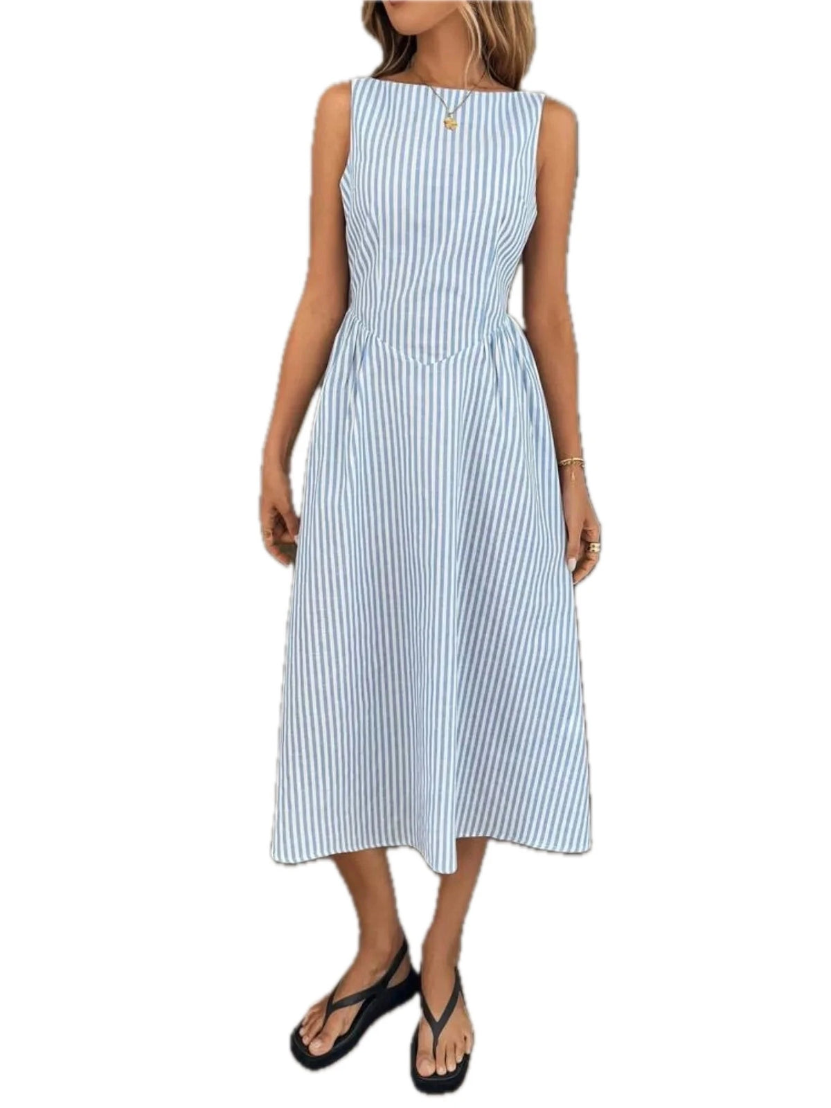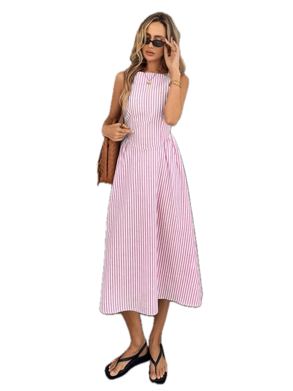 Women's Sleeveless Striped Midi Dress 100% Polyester Flattering Fit Comfortable Breathable Everyday Casual Wear