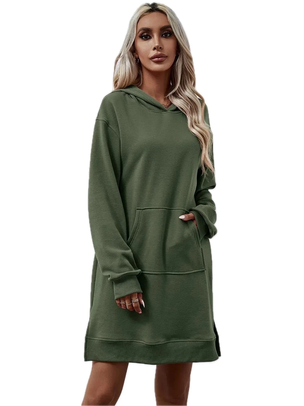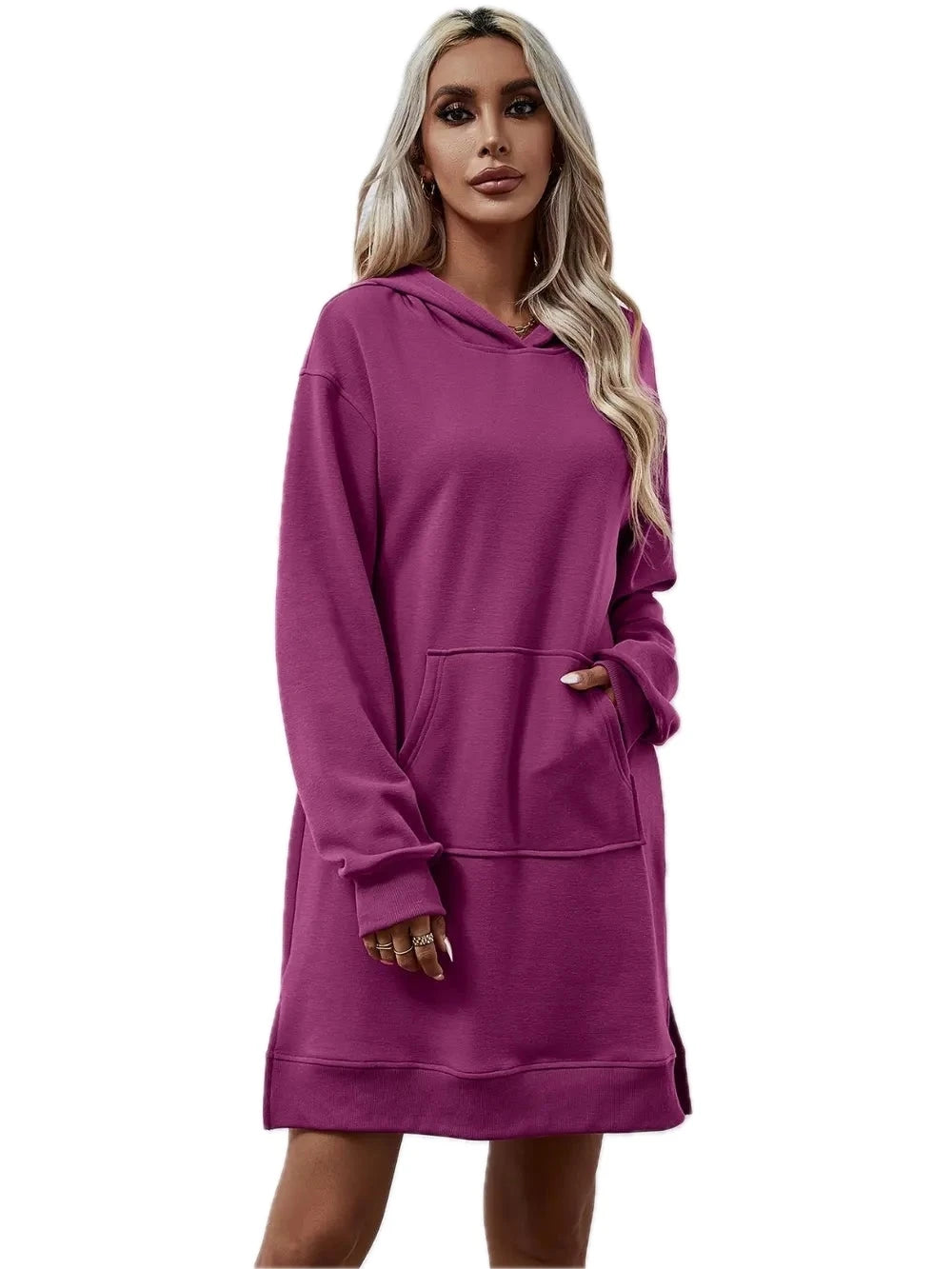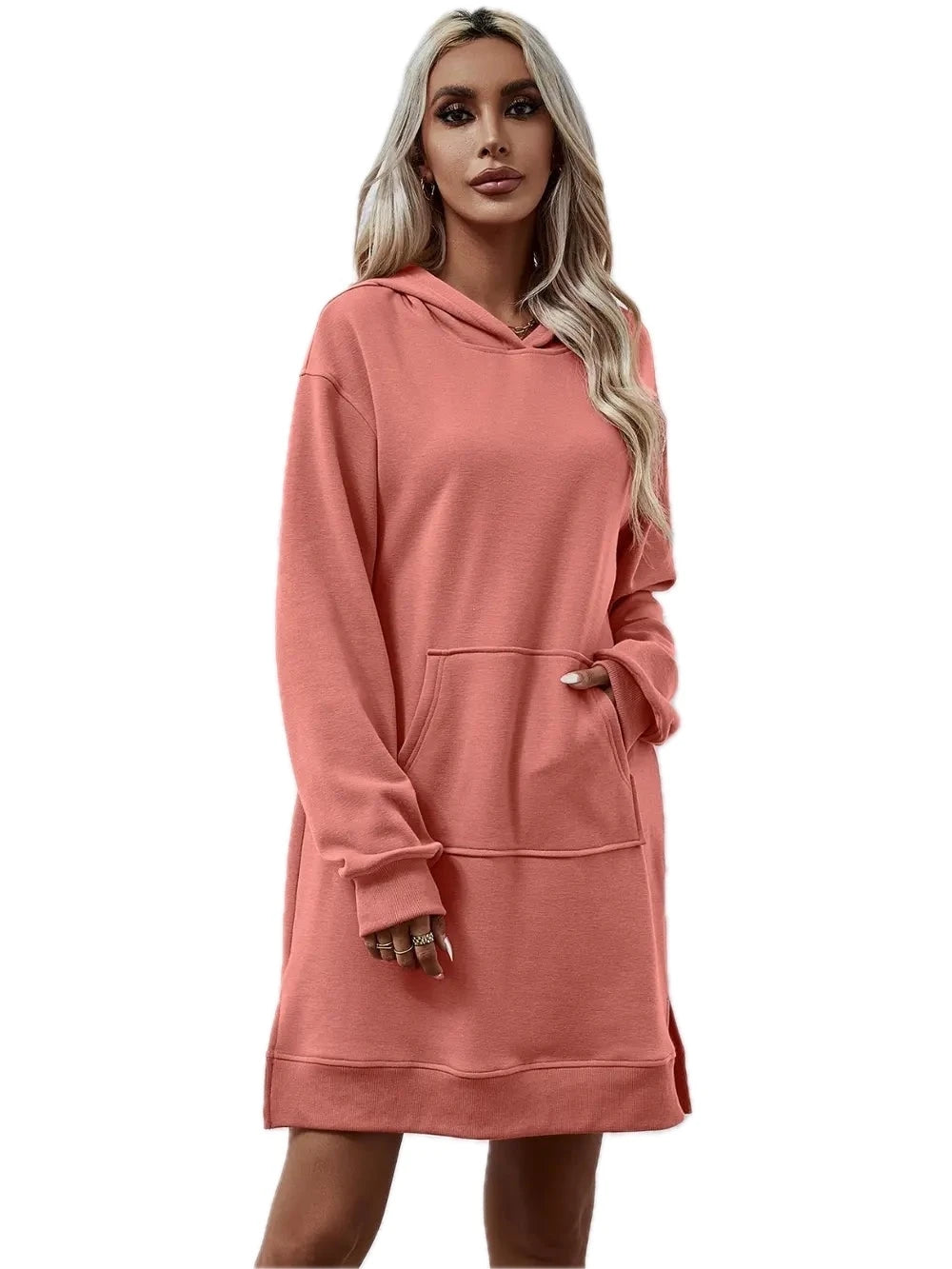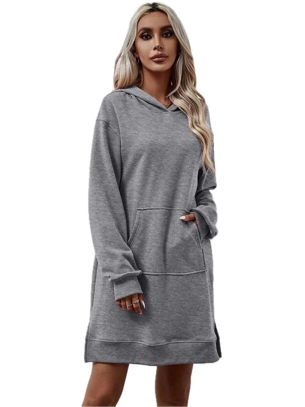 Women's Slit Long Sleeve Hooded Dress with Pocket Polyester 100% Comfortable Everyday Wear for Any Occasion Casual