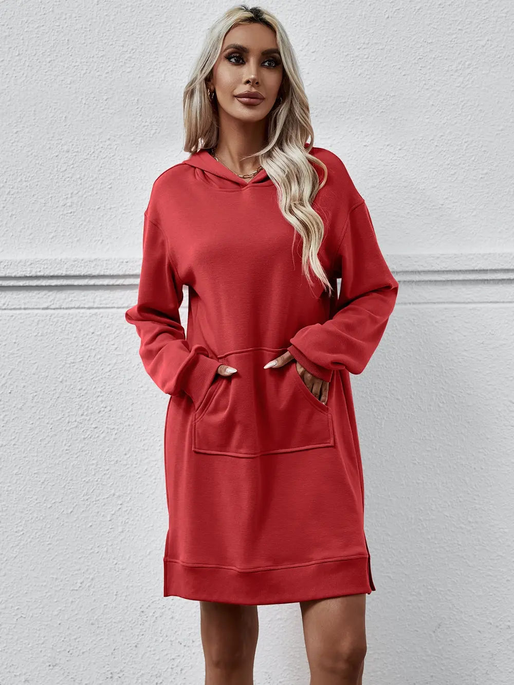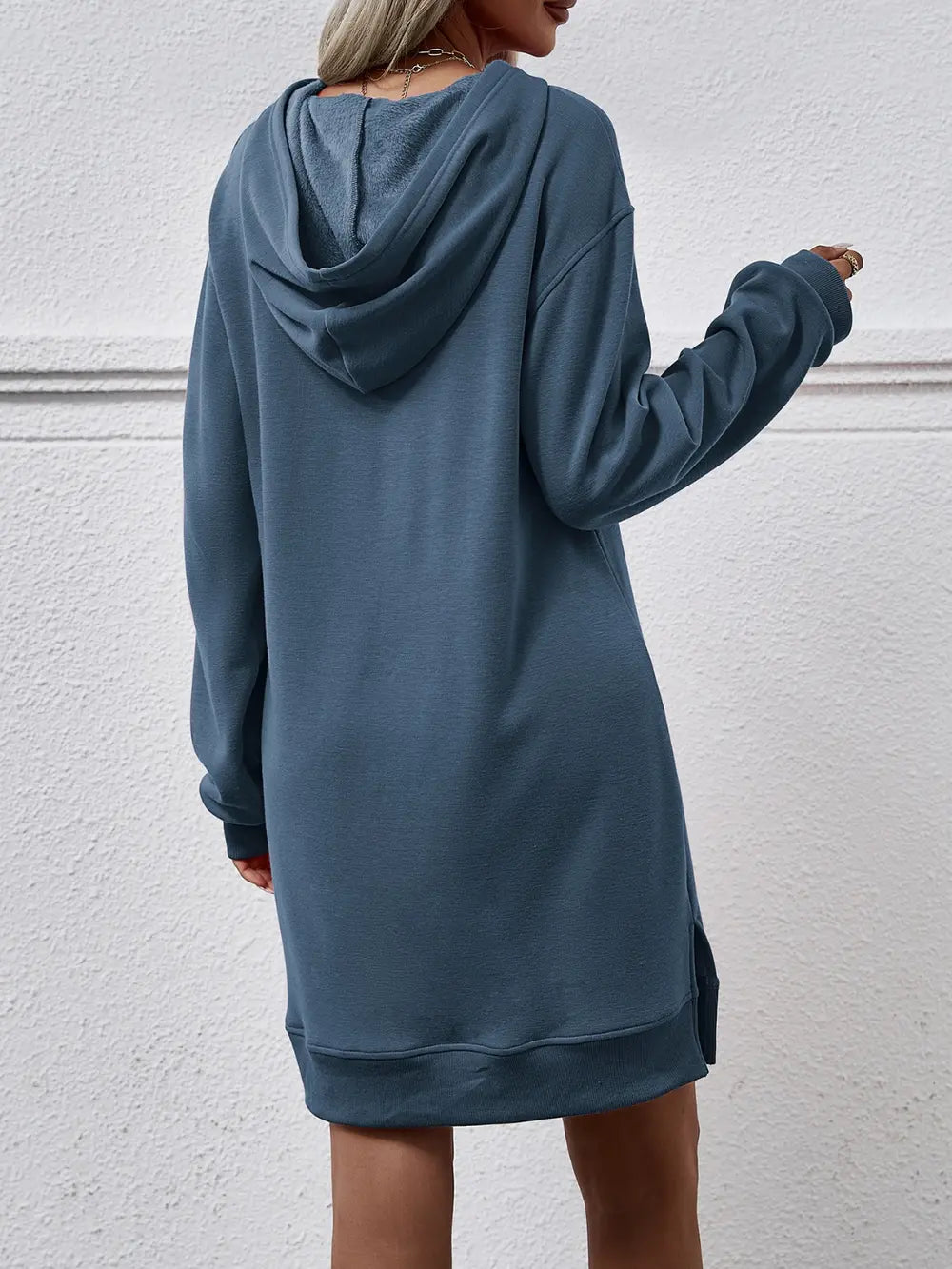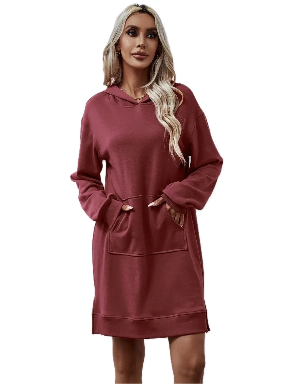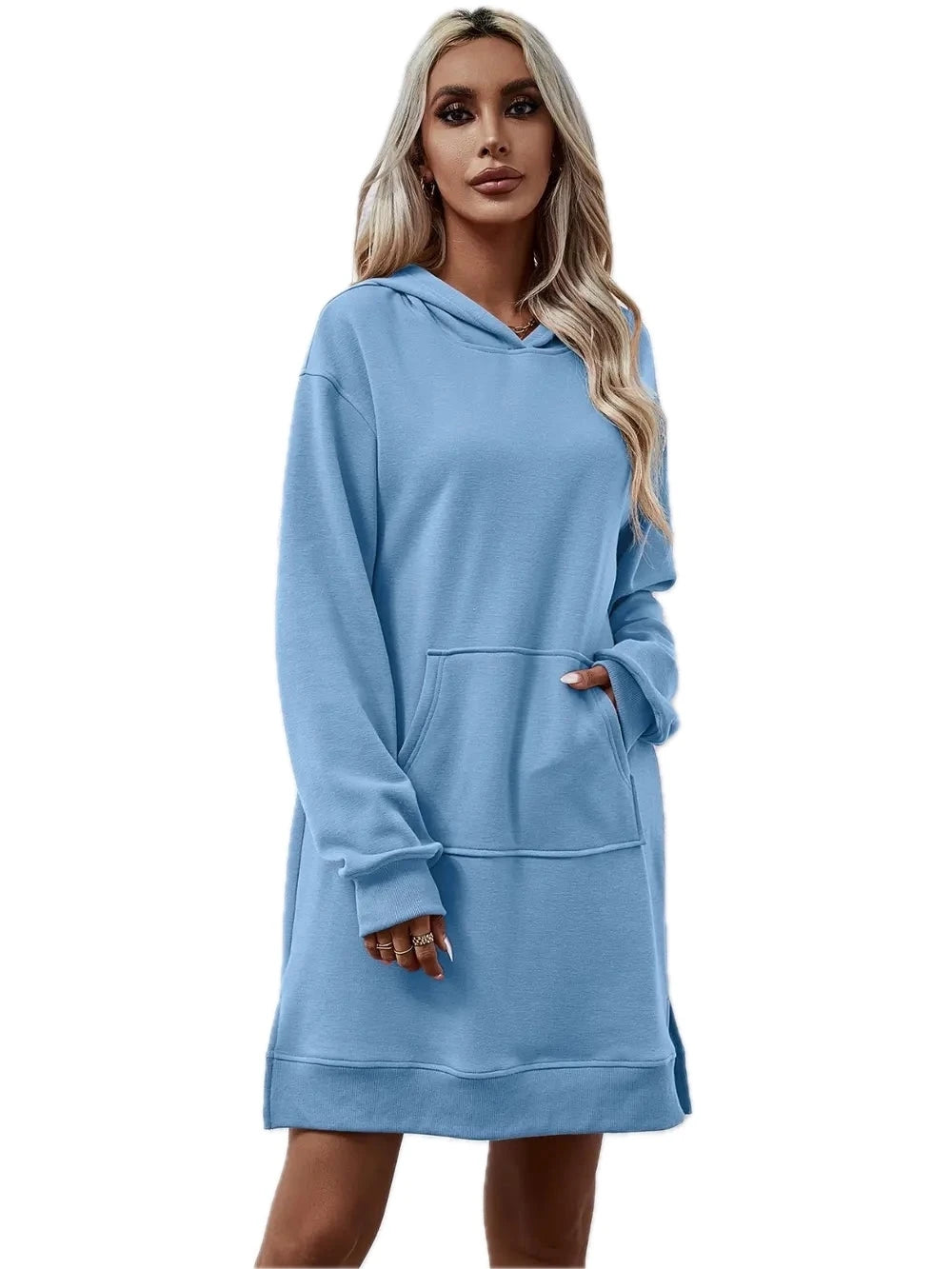 Women's Slit Long Sleeve Hooded Dress with Pocket Polyester 100% Comfortable Everyday Wear for Any Occasion Casual