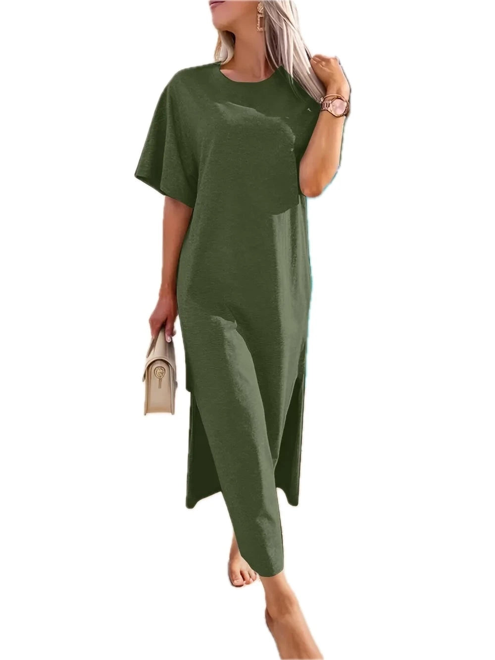 Men's Slit Round Neck Half Sleeve Tee Dress with Sheer Slit Detail and Stretchy Body for Easy Everyday Wear Casual