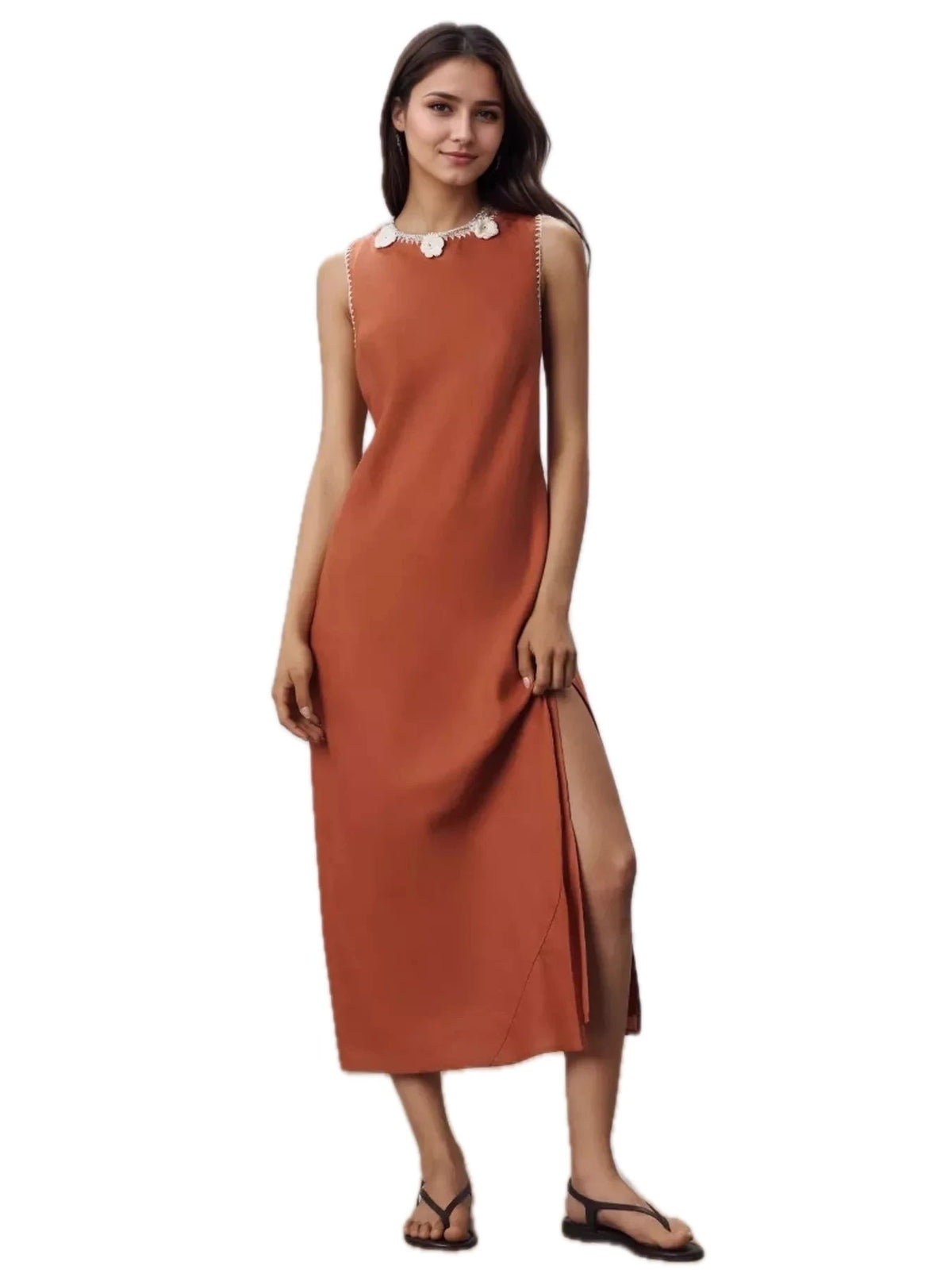Women's Slit Round Neck Sleeveless Midi Tank Dress with Slight Stretch and Modern silhouette 97% rayon and 3% spandex