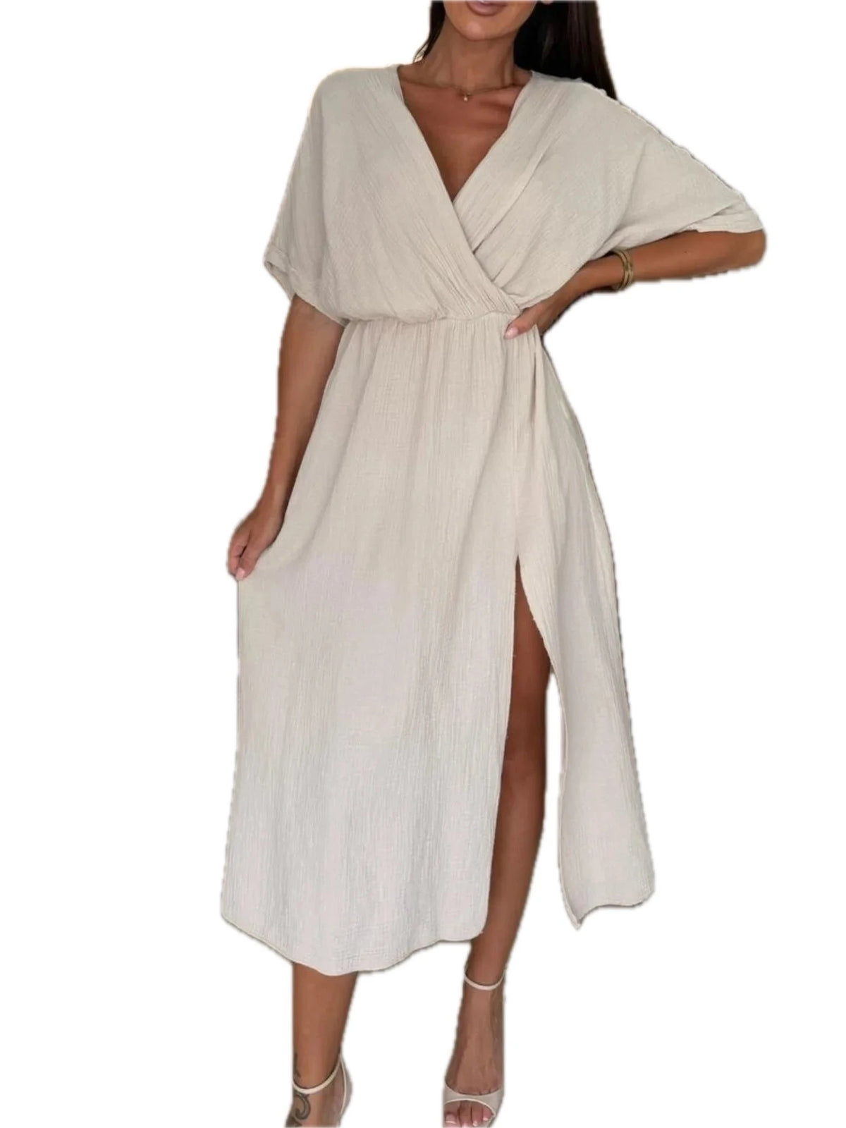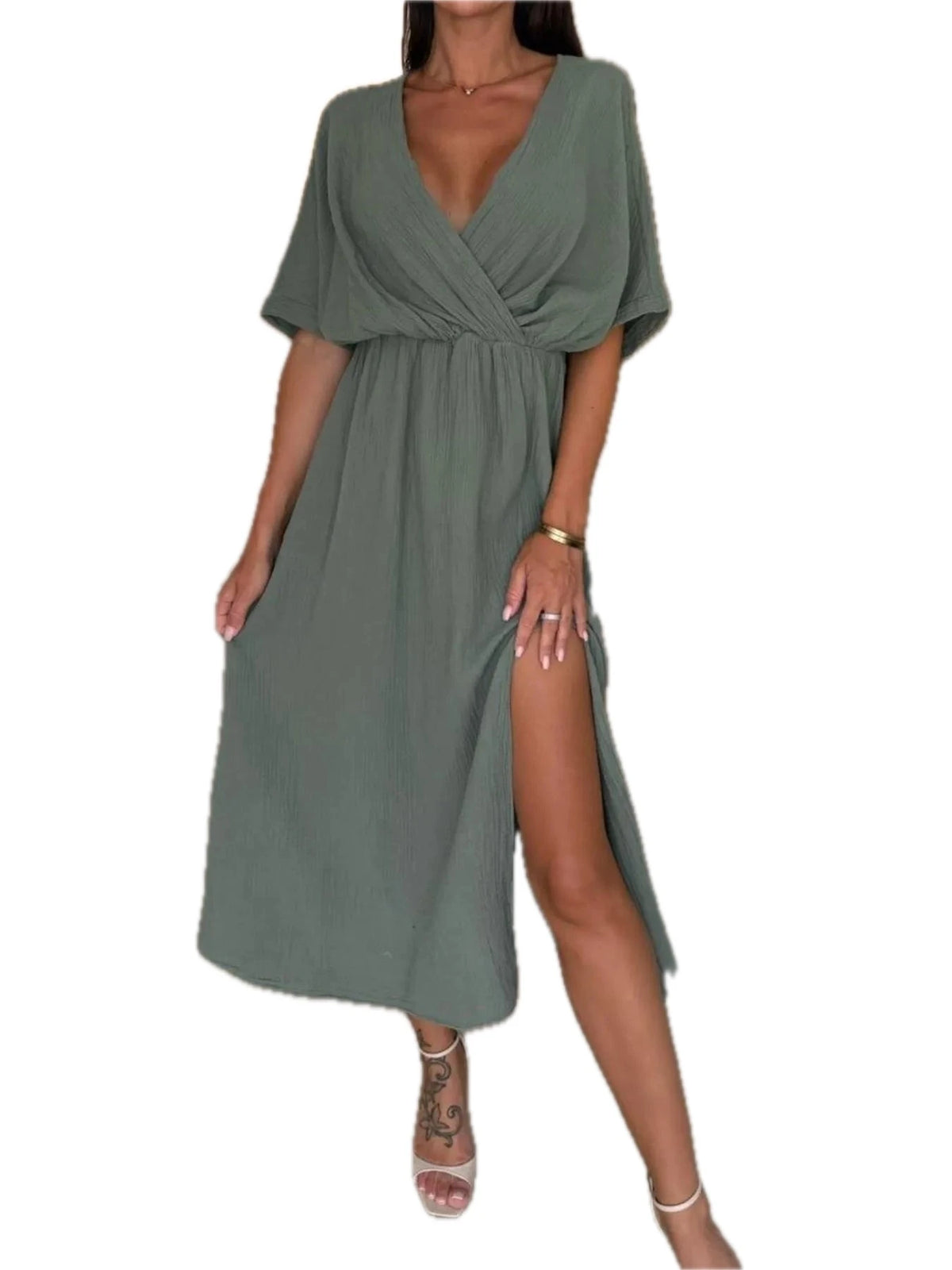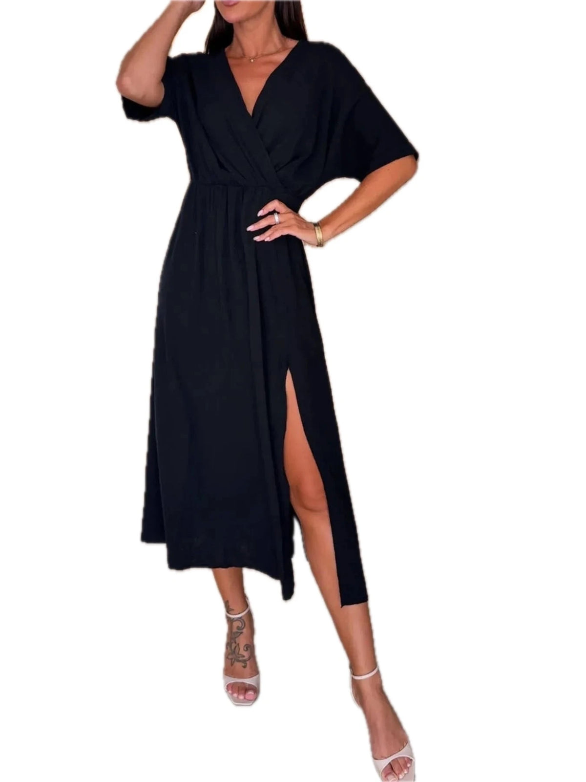 Women's Slit Surplice Midi Dress with Half Sleeve Perfect for Day to Night Events 100% Polyester Fabric for daily wear