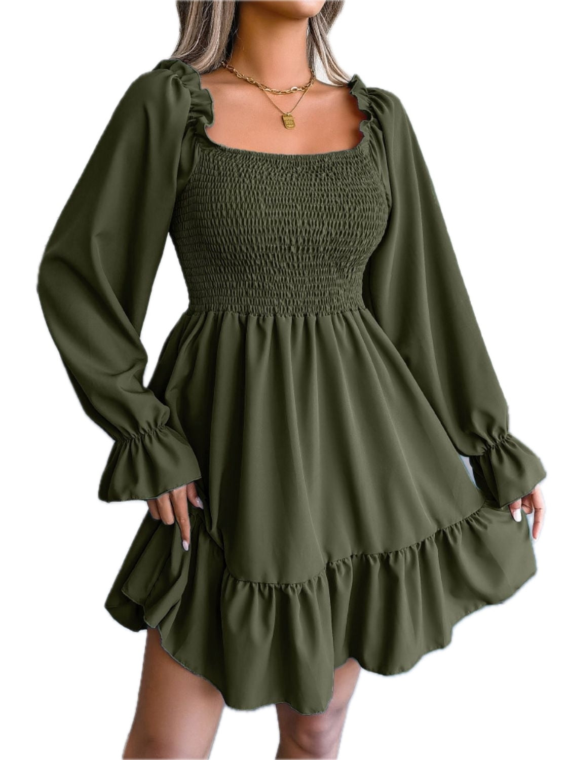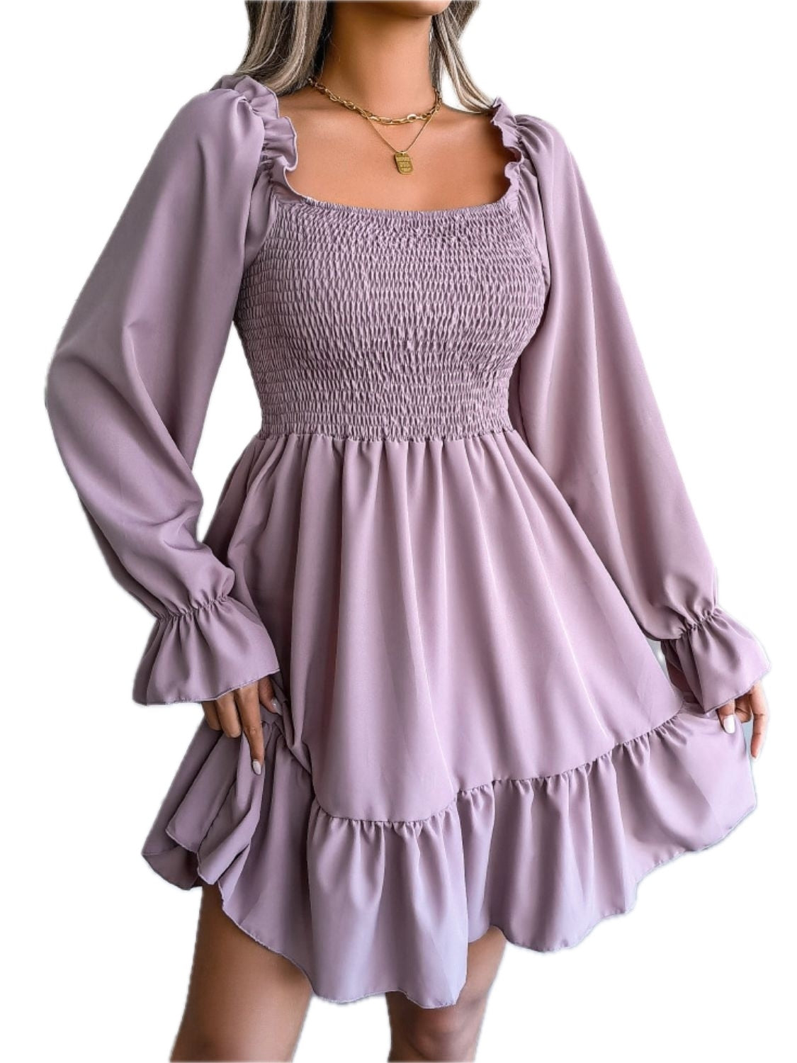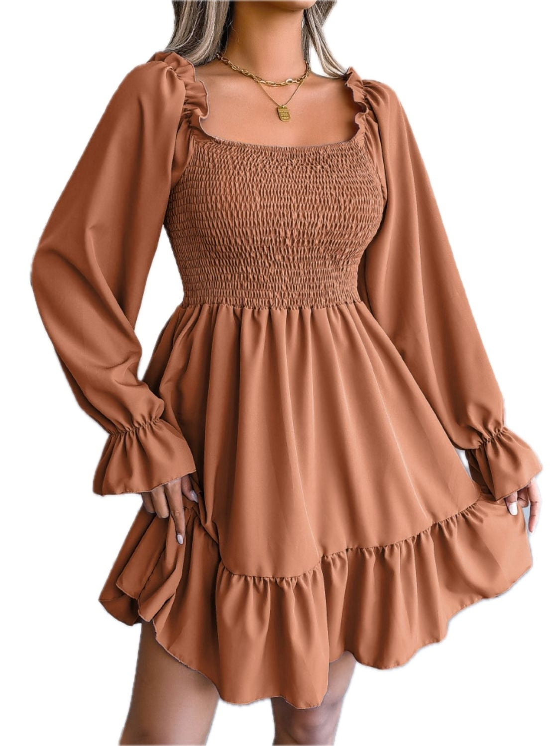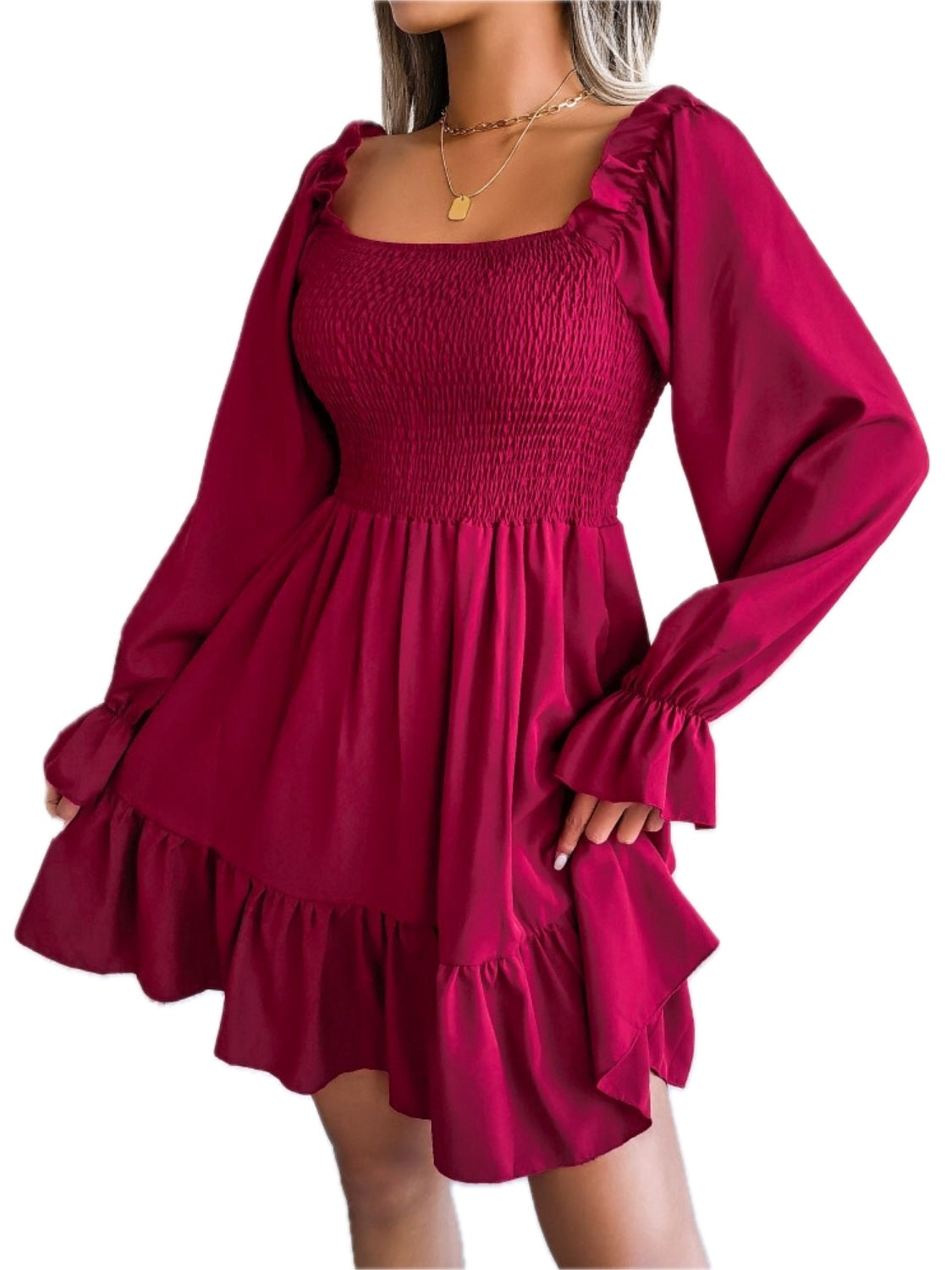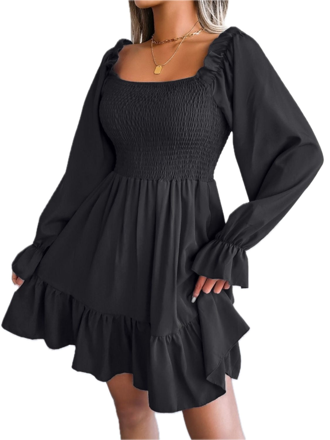 Women's Smocked Flounce Sleeve Square Neck Mini Dress Casual Chic Everyday Wear 100% Polyester Lightweight Soft