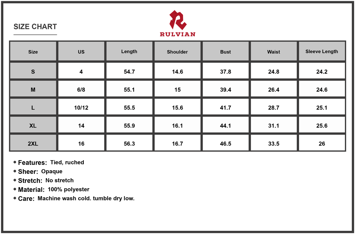 Size | US | Length | Shoulder | Bust | Waist | Sleeve Length |