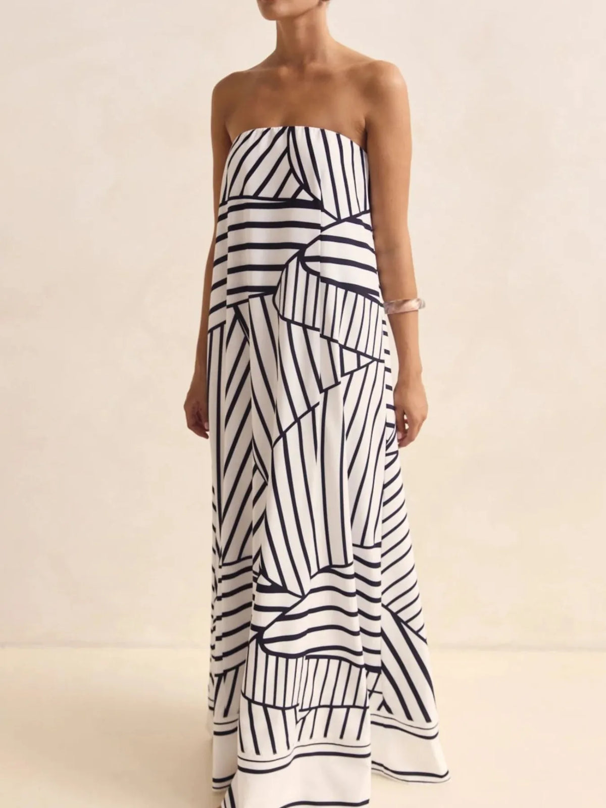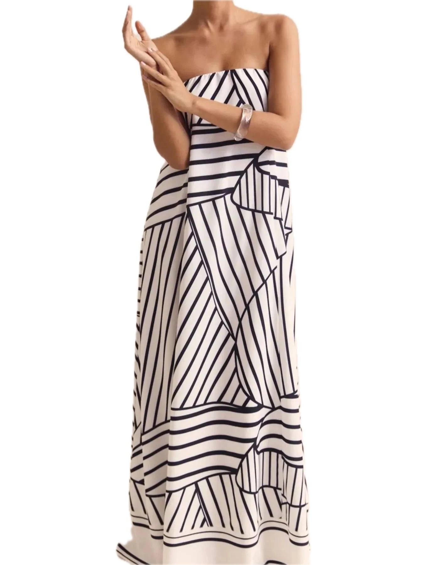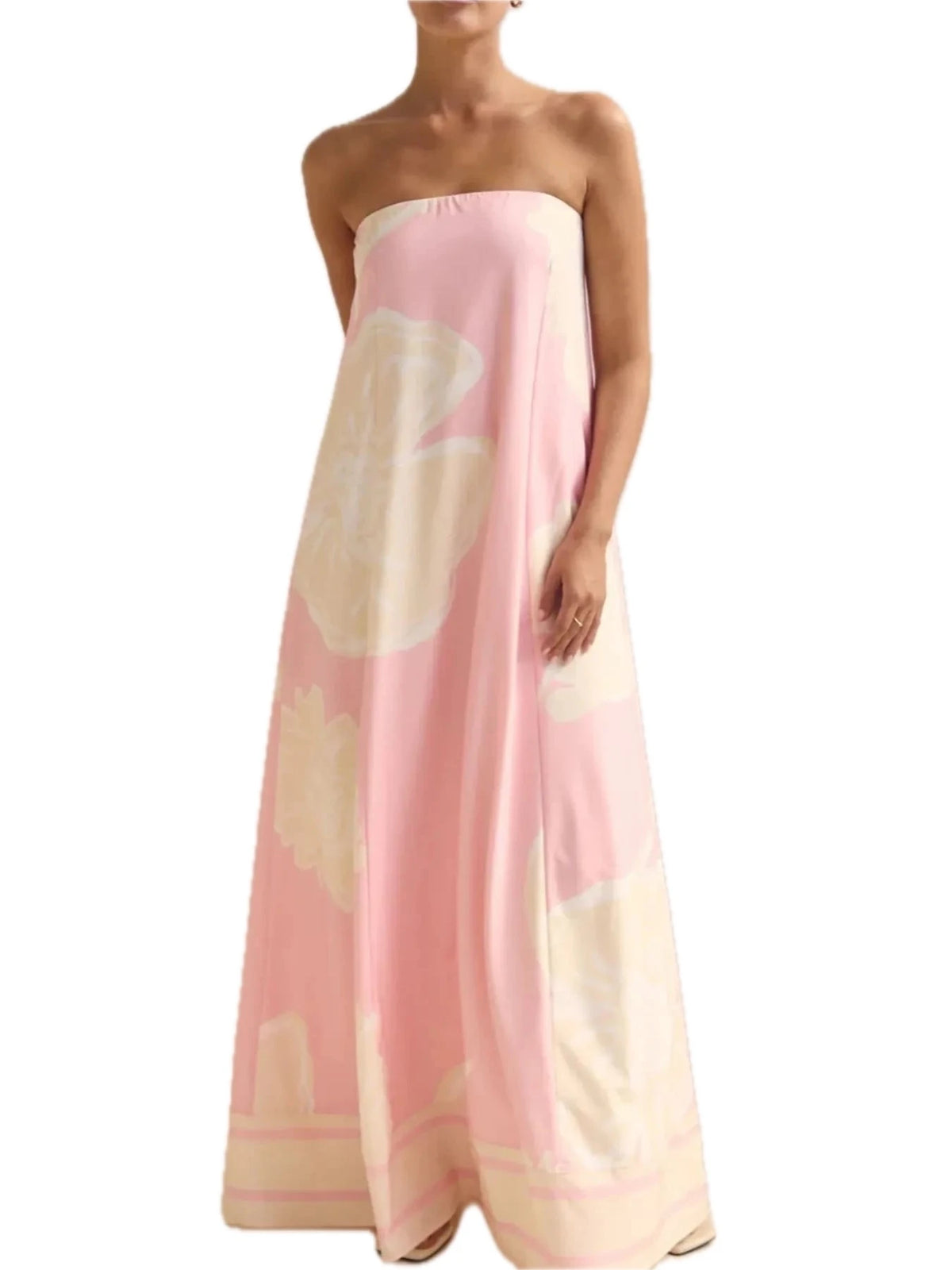 Women's Smocked Printed Tube Maxi Dress fabric 100% Polyester Comfortable Lightweight Everyday Wear for Summer