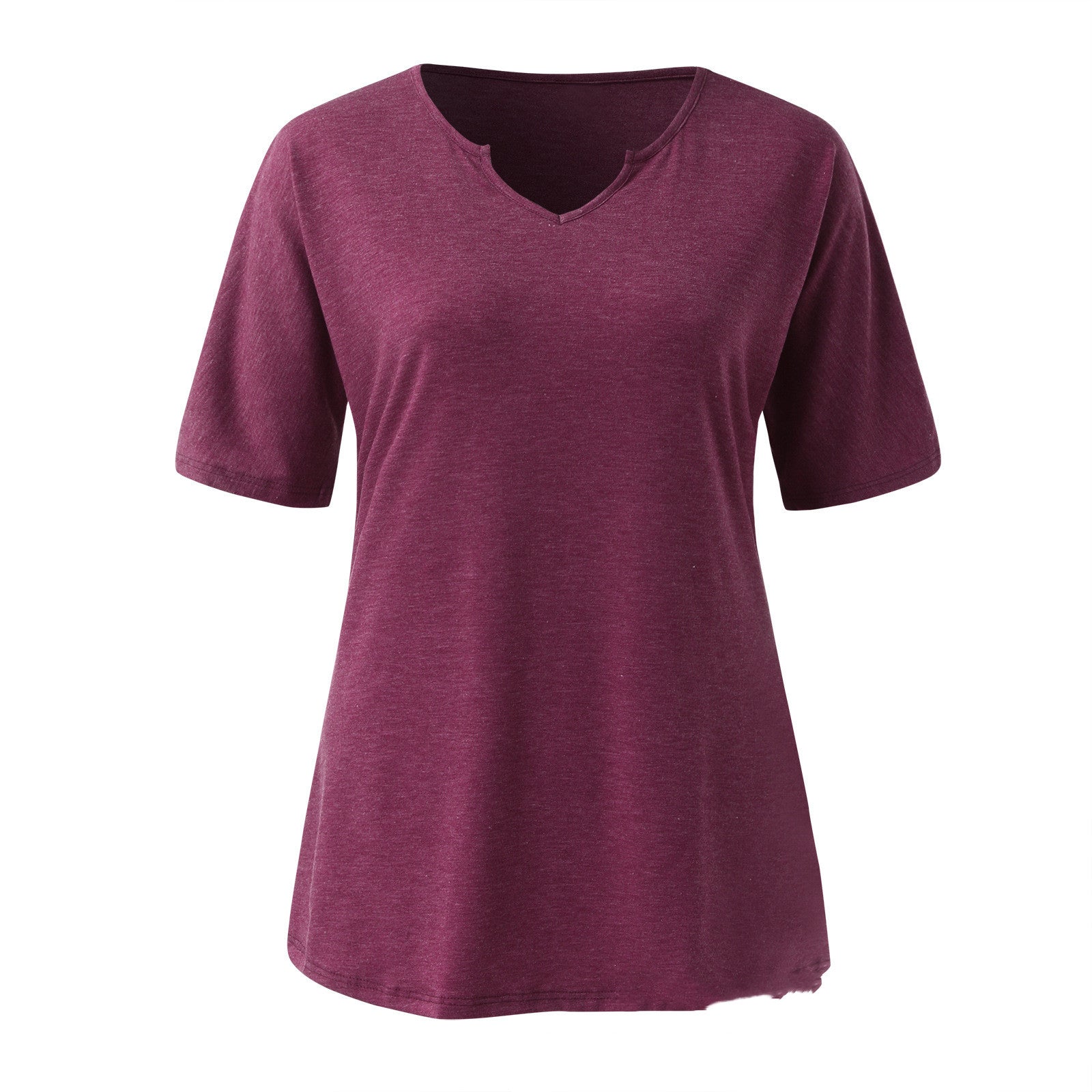 Women's V Neck Short Sleeve Solid Color T Shirt Top Forty One To Seventy Percent Cotton All Day Comfort