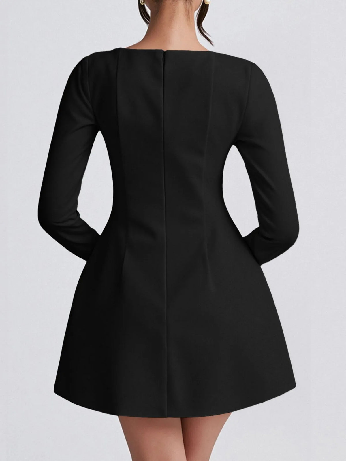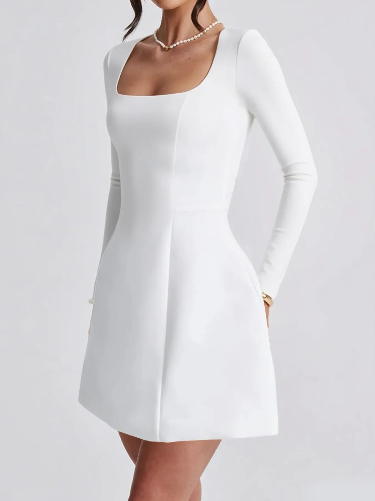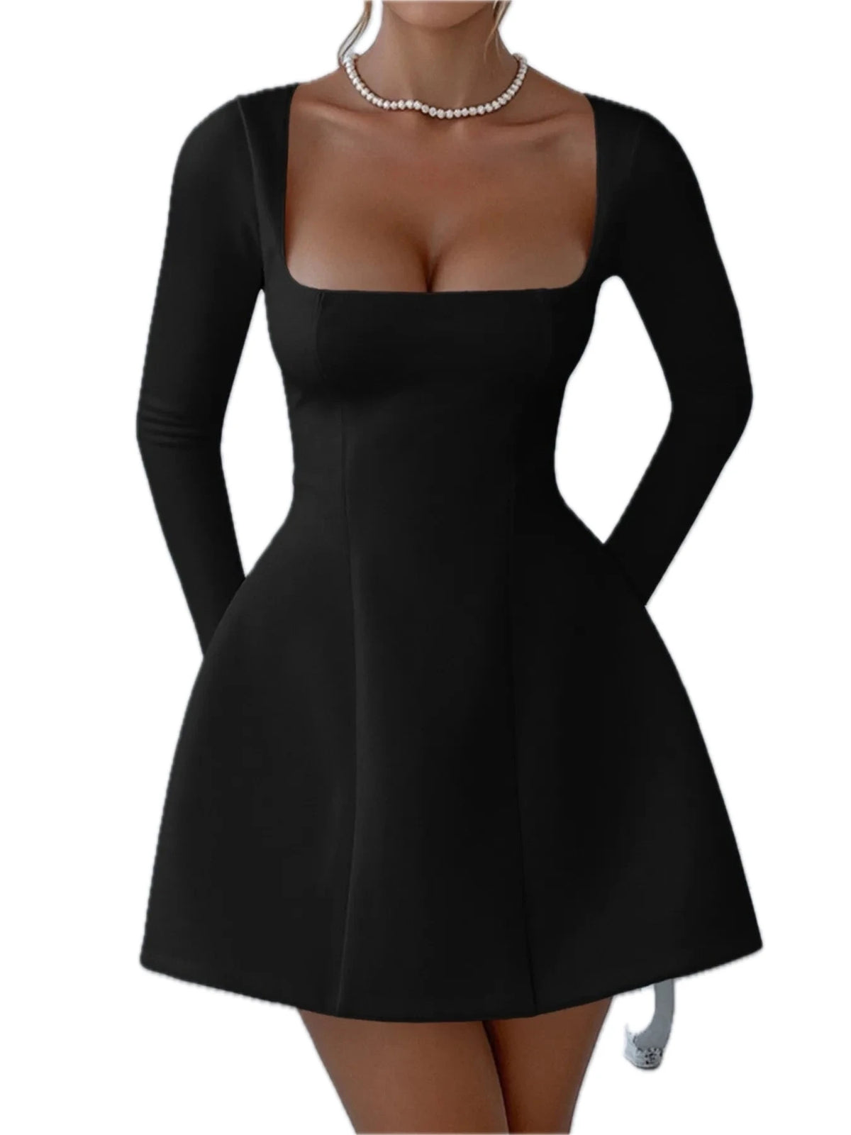 Women's Square Neck Long Sleeve Mini Dress with Stretch Outer 95% polyester 5% elastane Lining 95% polyester 5% elastane