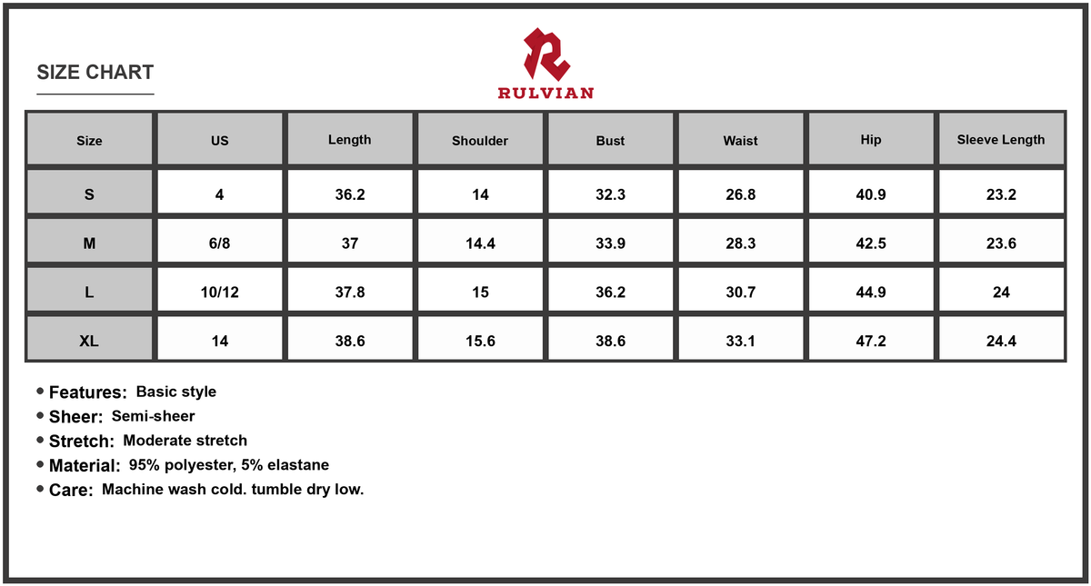 Size | US | Length | Shoulder | Bust | Waist | Hip | Sleeve Length |