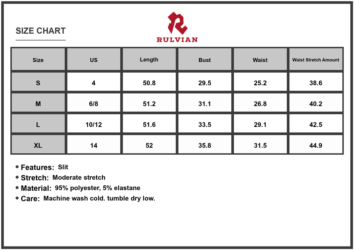 Size | US | Length | Bust | Waist | Waist Stretch Amount |