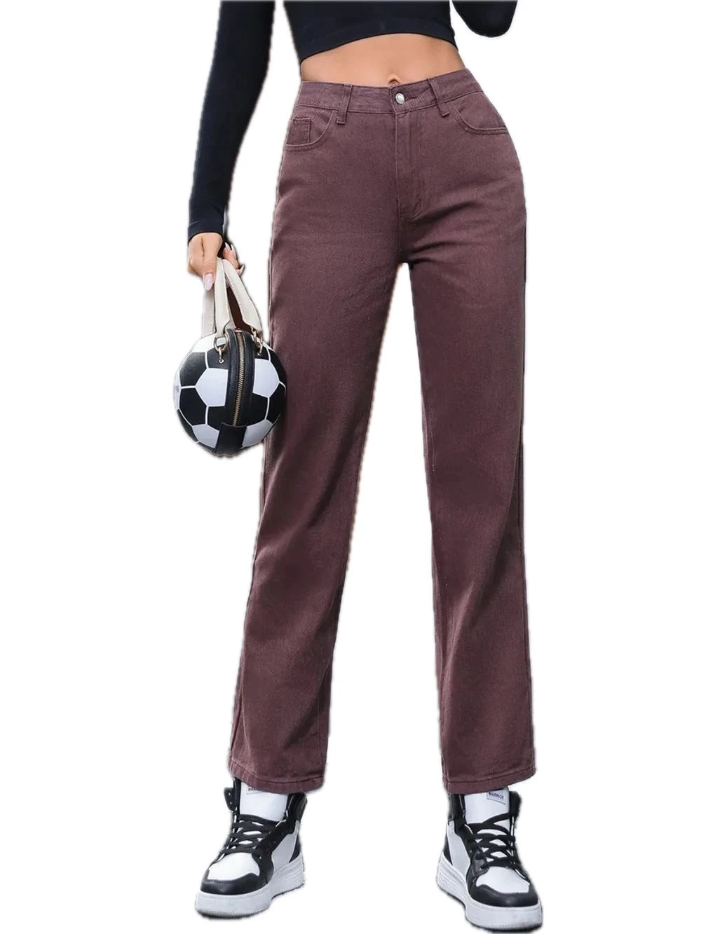 Womens Straight Leg Jeans with Pockets Buttoned and Slightly Stretchy Durable Denim Pants for Everyday Casual Wear