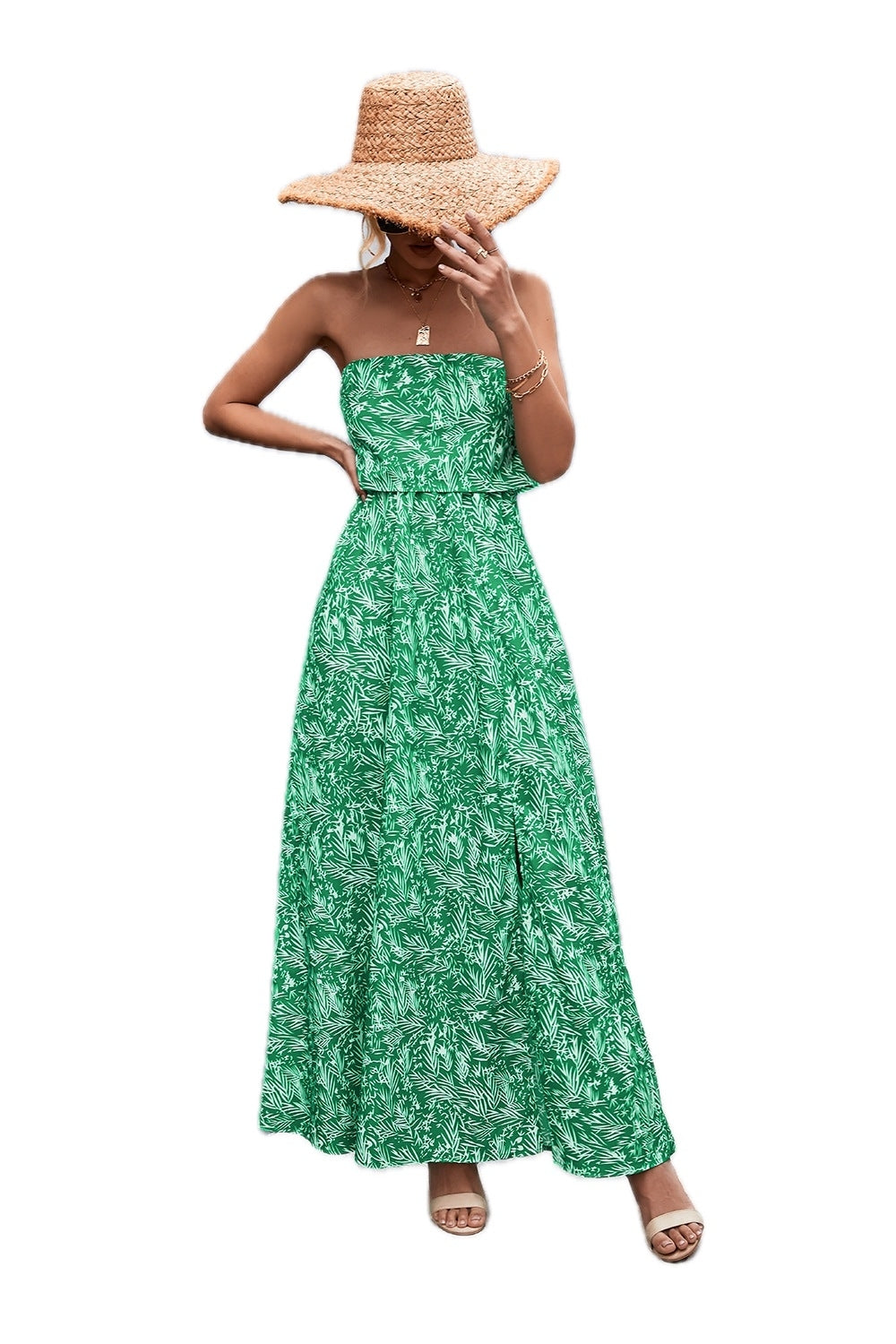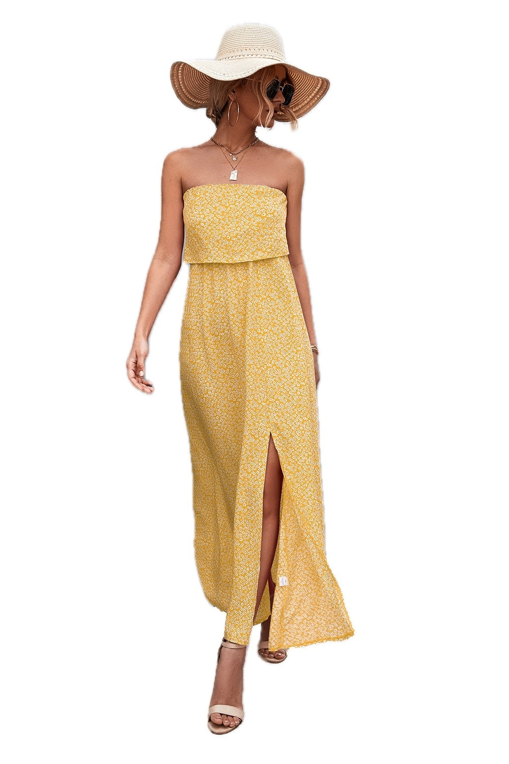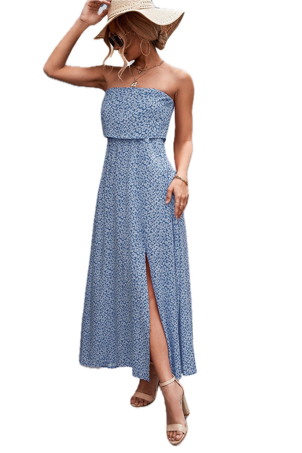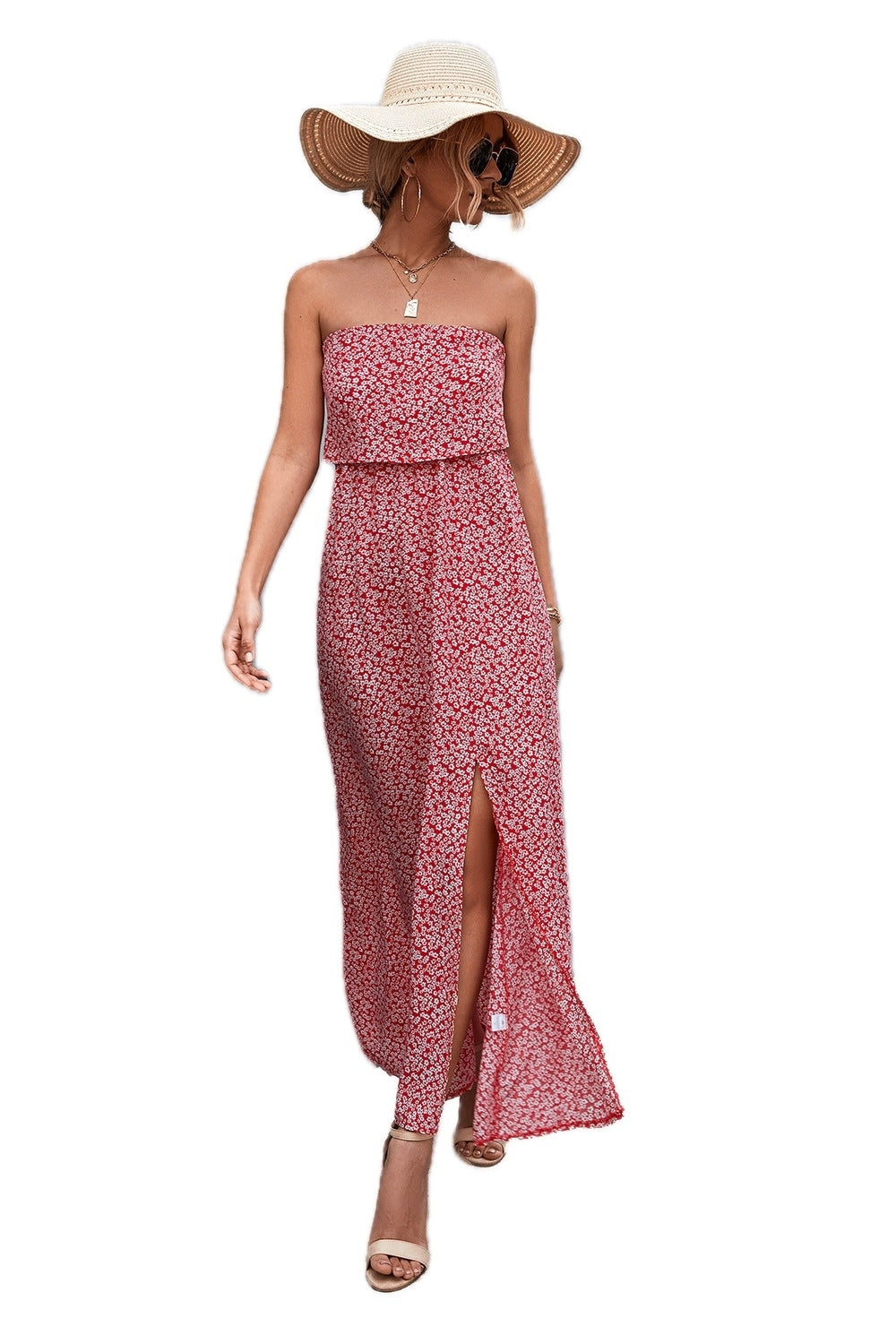 Women's Strapless Split Maxi Dress Sleeveless Solid Floral Pattern With Slit Maxi Ninety five% Polyester Five% Spandex