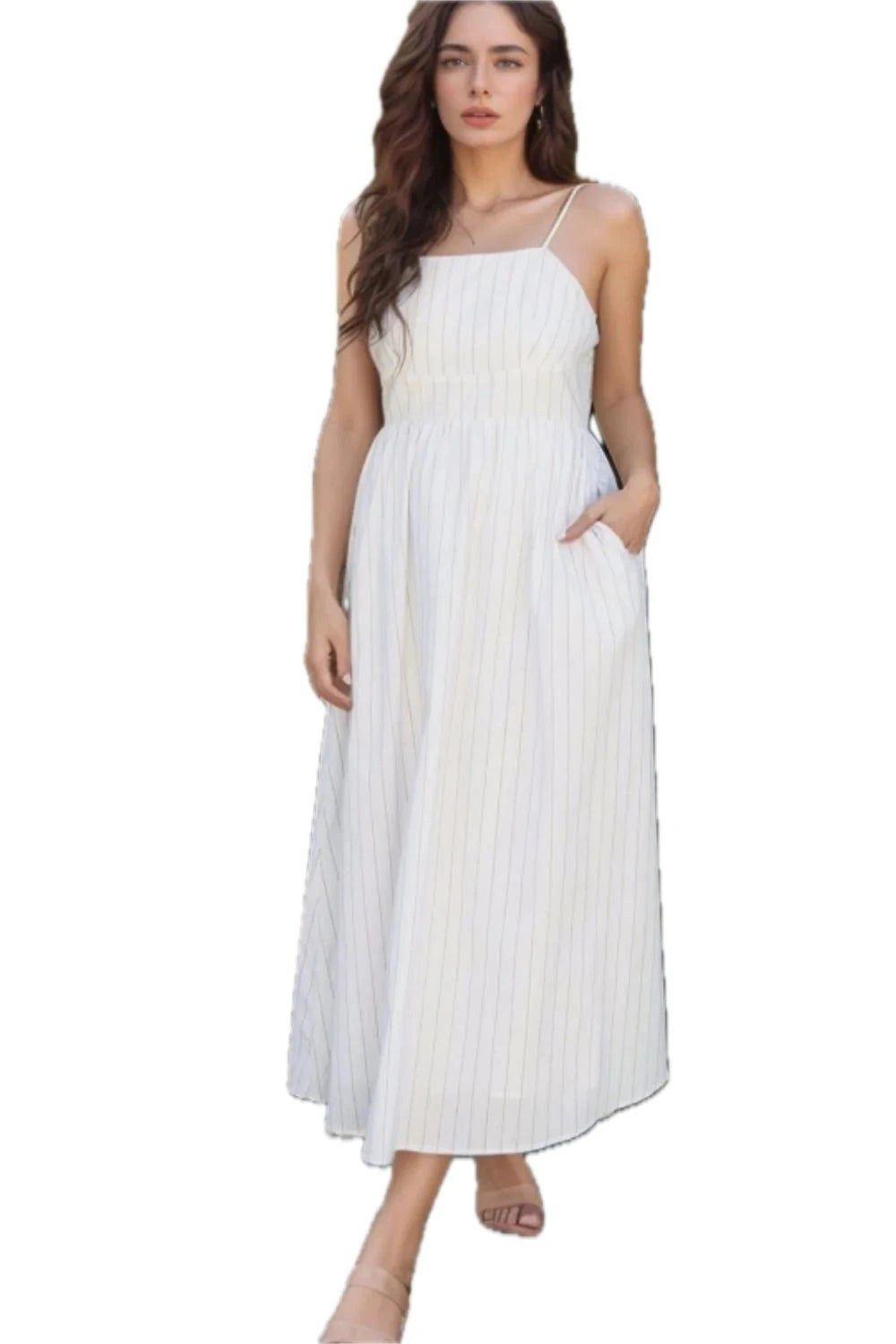 Women's Stripe Square Neck Cami Dress with Pockets Lightweight Chic Silhouette 65% Polyester 35% Cotton Everyday wear