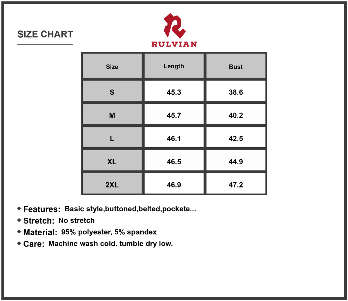 - Features:Basic style,Buttoned,Belted,Pocketed