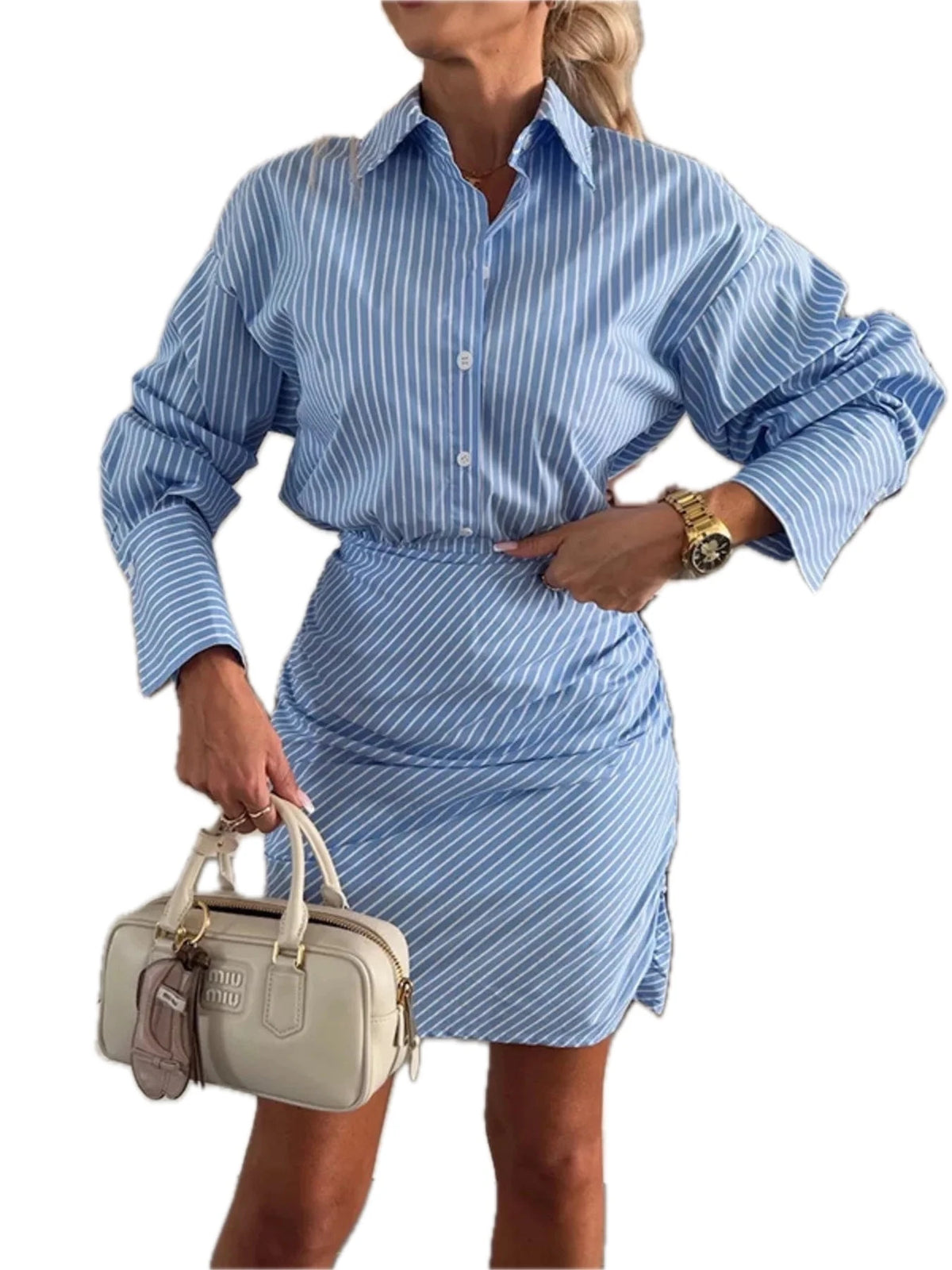 Women's Striped Button Front Mini Shirt Dress with Classic Silhouette Polyester % Fabric for Easy Care All Day Wear