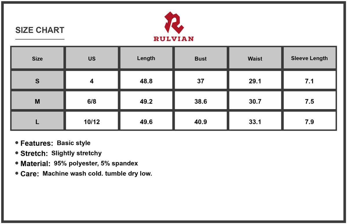 Size | US | Length | Bust | Waist | Sleeve Length |