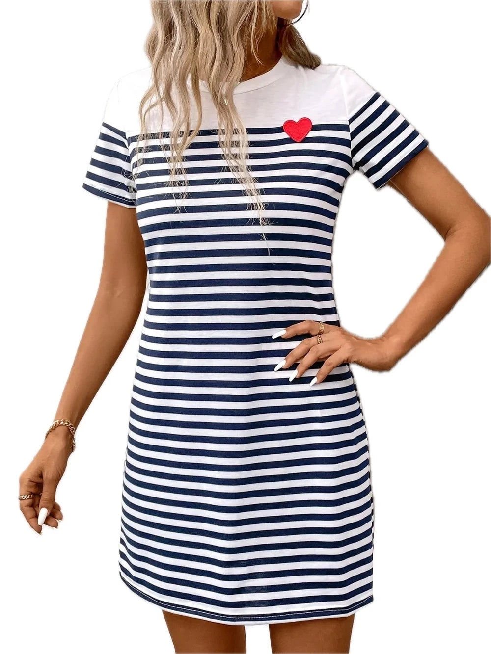 Women's Striped Round Neck Short Sleeve Mini Dress Lightweight Everyday Wear 95% Polyester 5% Elastane for Easy Comfort