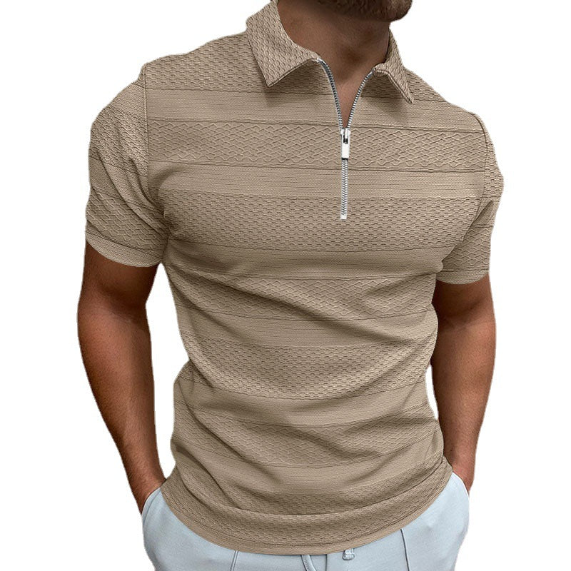 Men's Summer Short Sleeve Lapel Shirt Solid Color Casual Jacquard Top 50% Spandex Chemical Fiber Blend