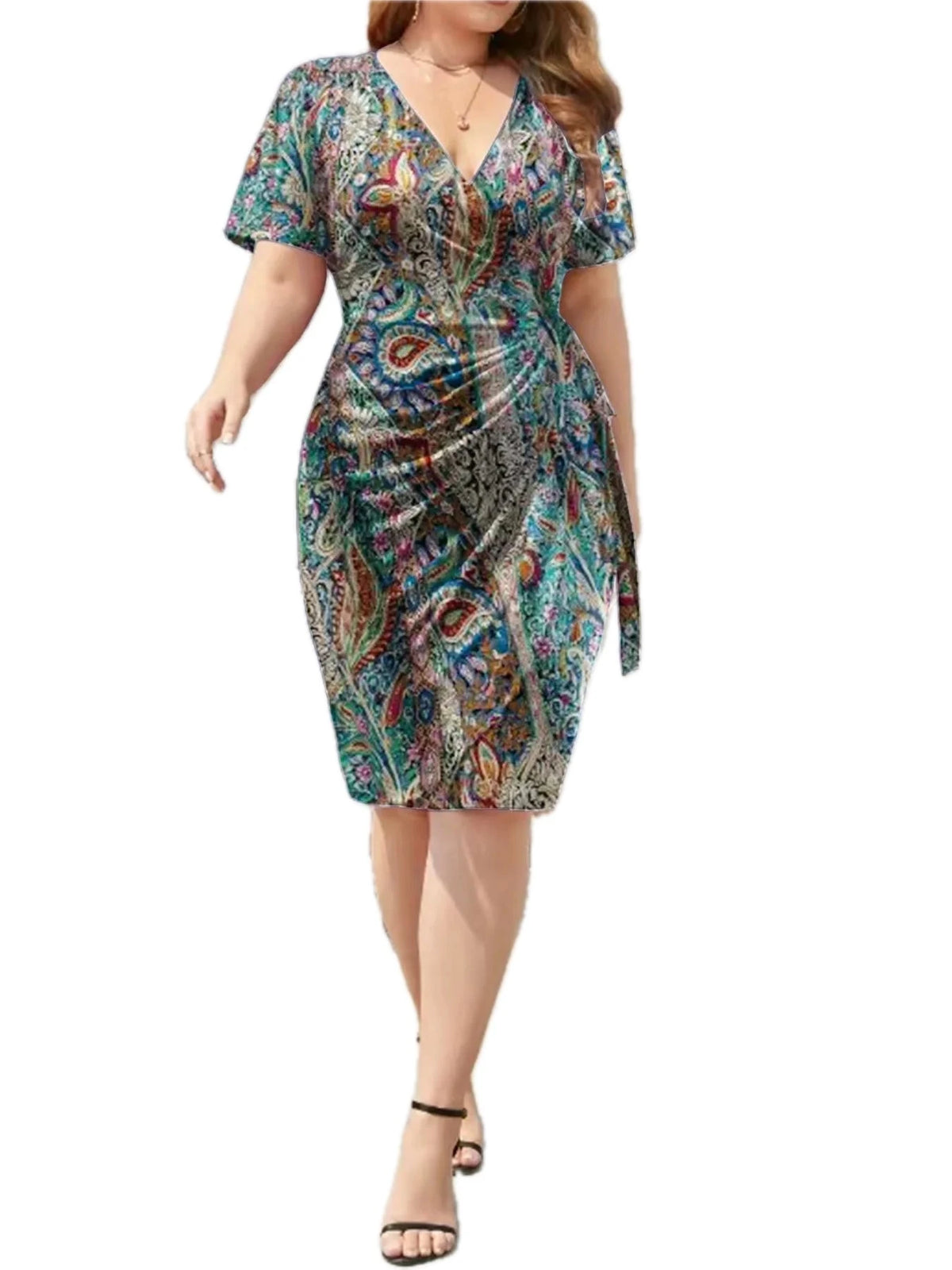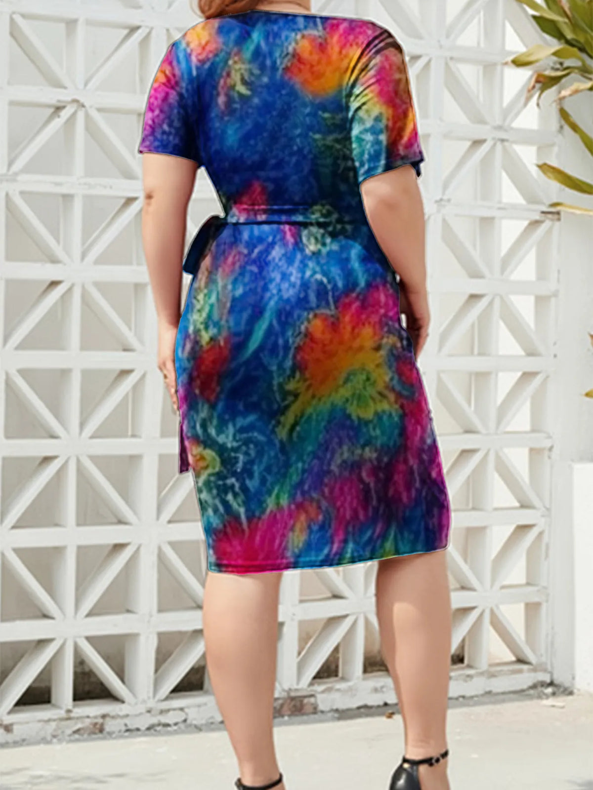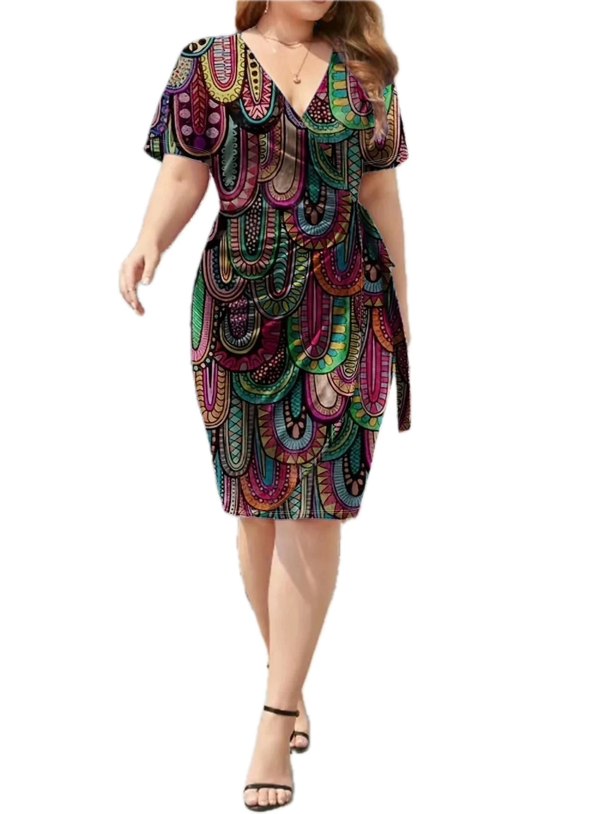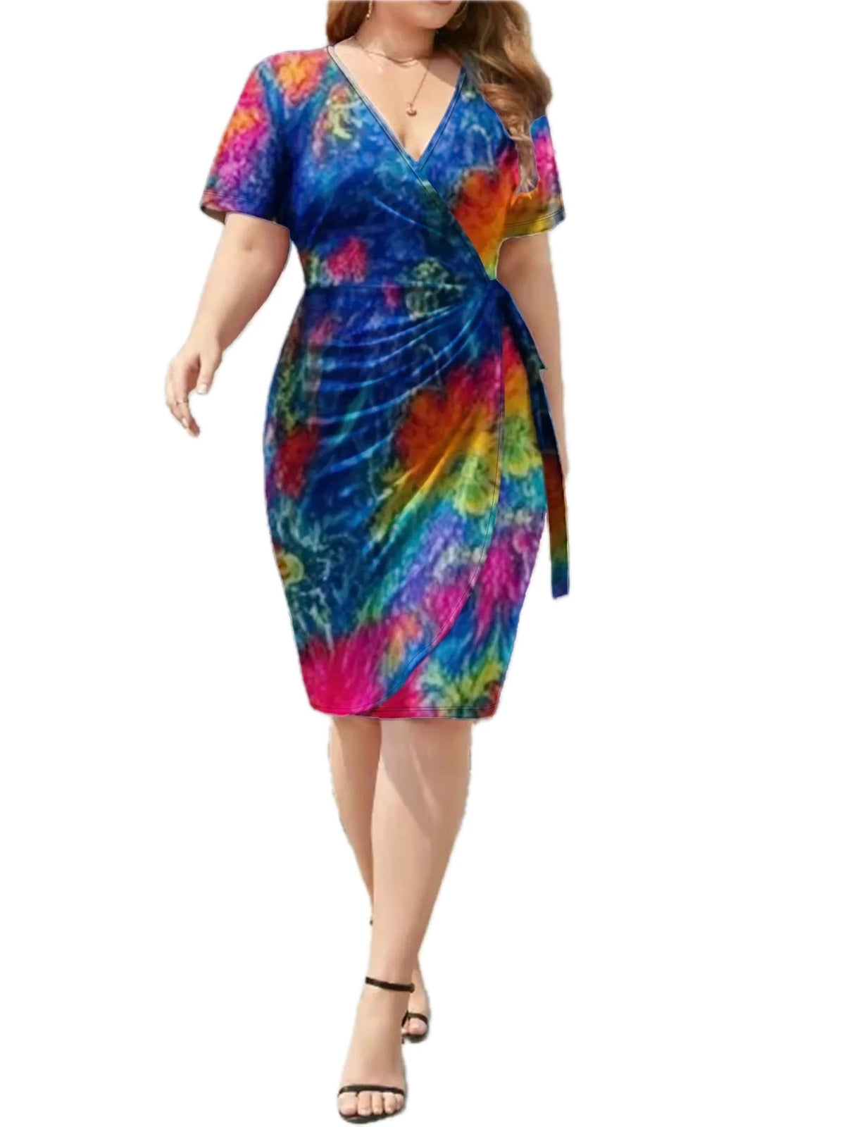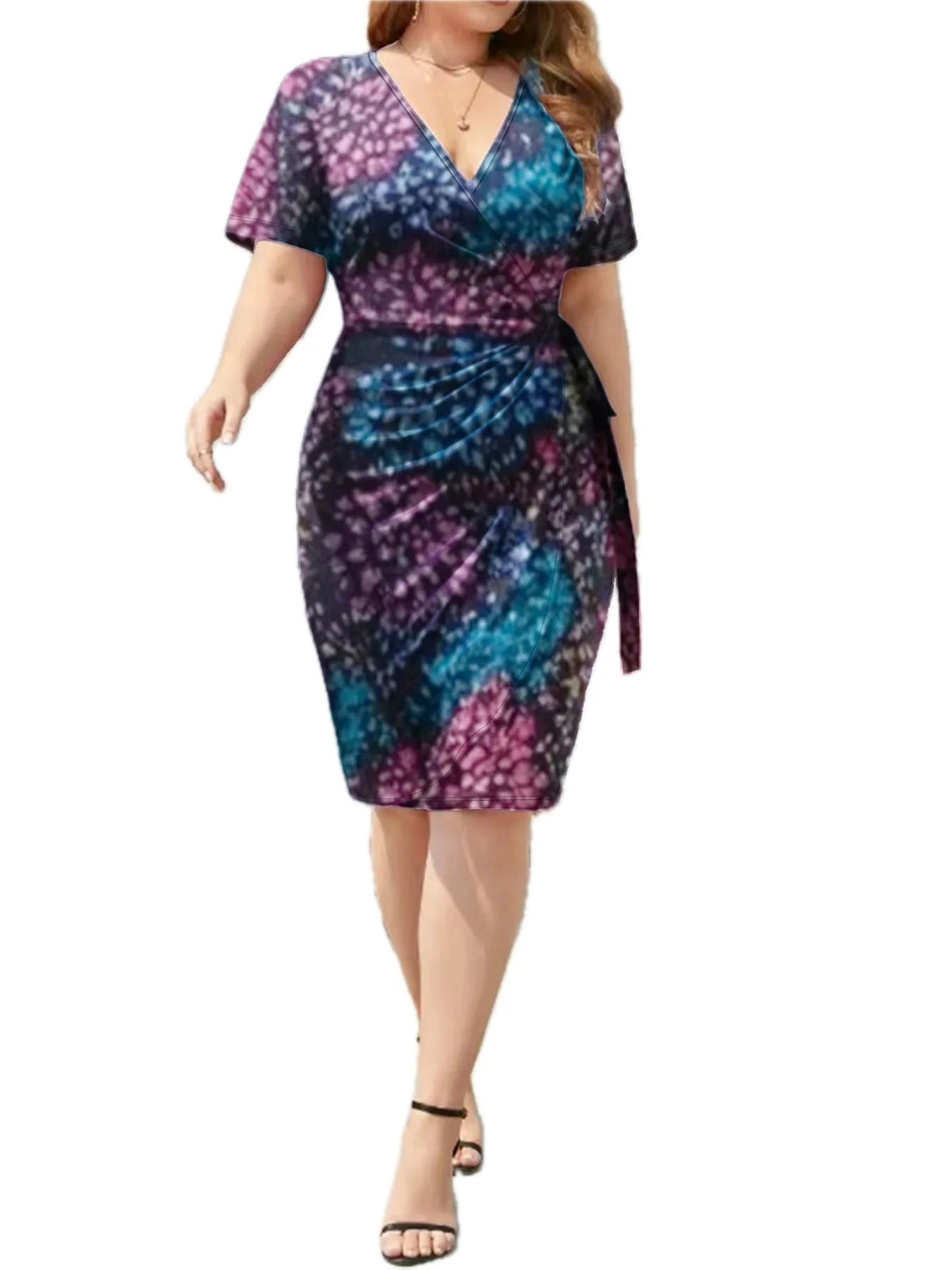 Women's Surplice Short Sleeve Dress with Ninety Five Percent Polyester and Five Percent Spandex Stretch Fabric