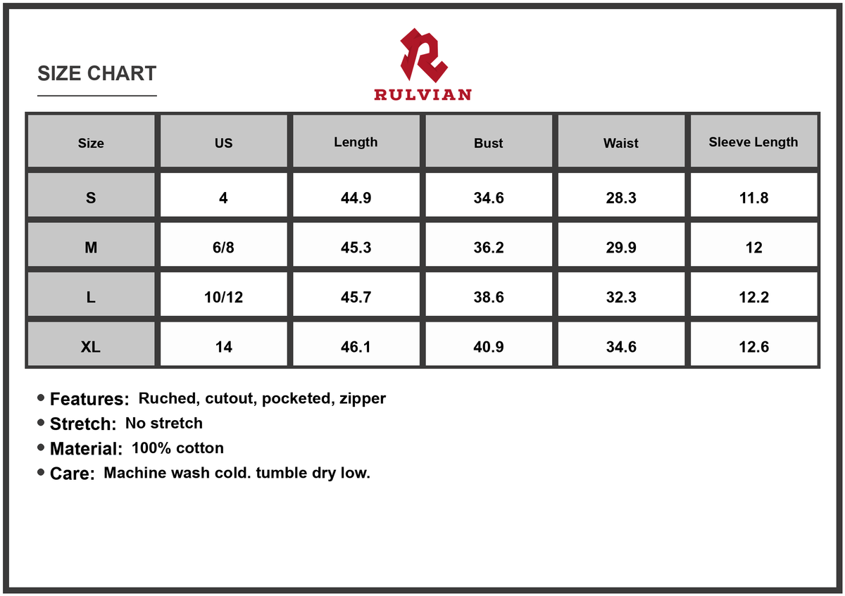 Size | US | Length | Bust | Waist | Sleeve Length |