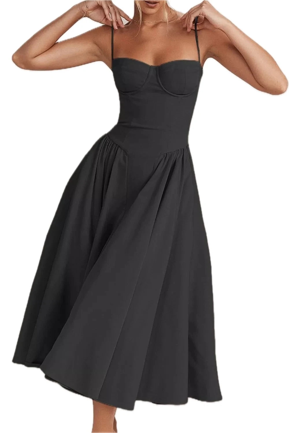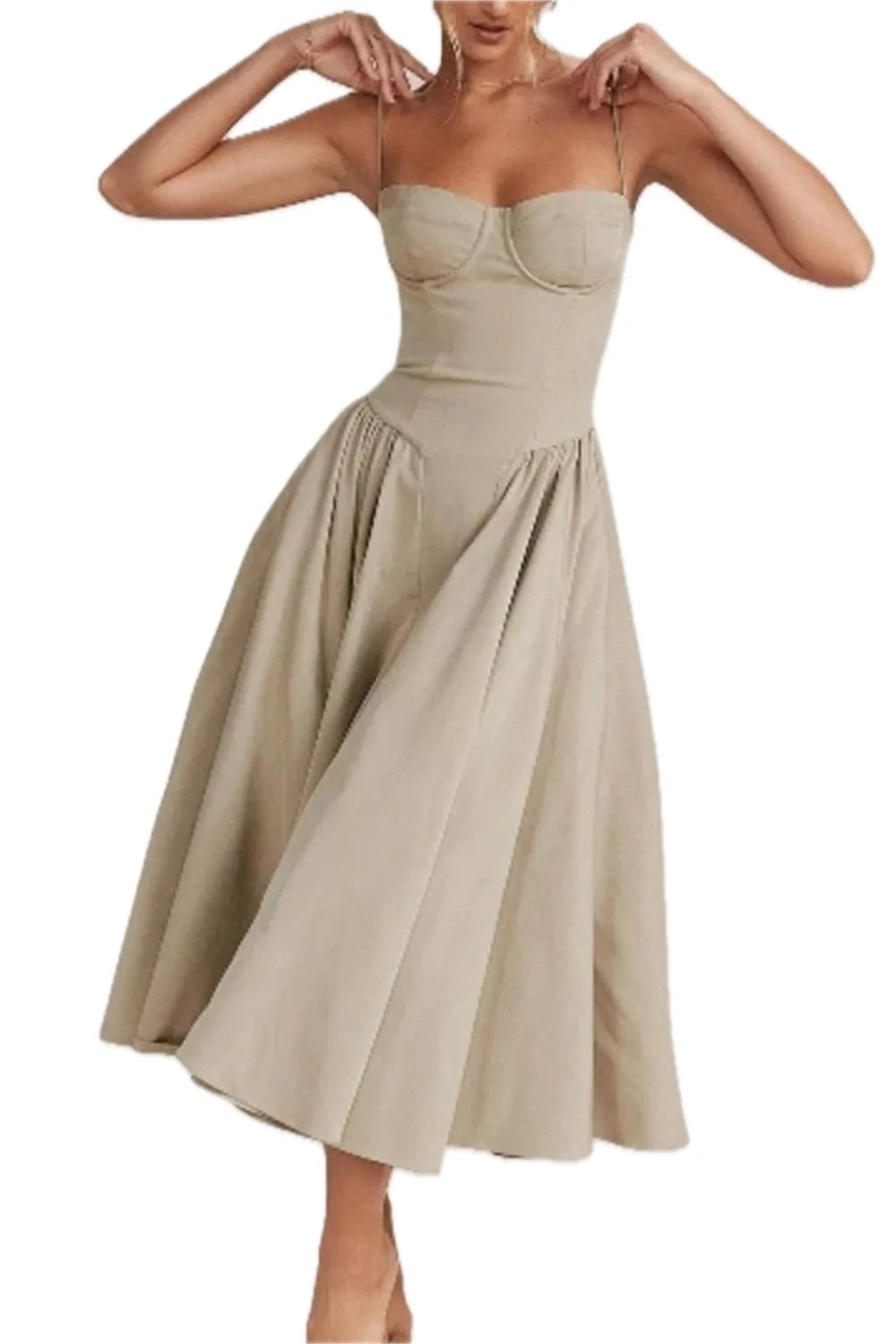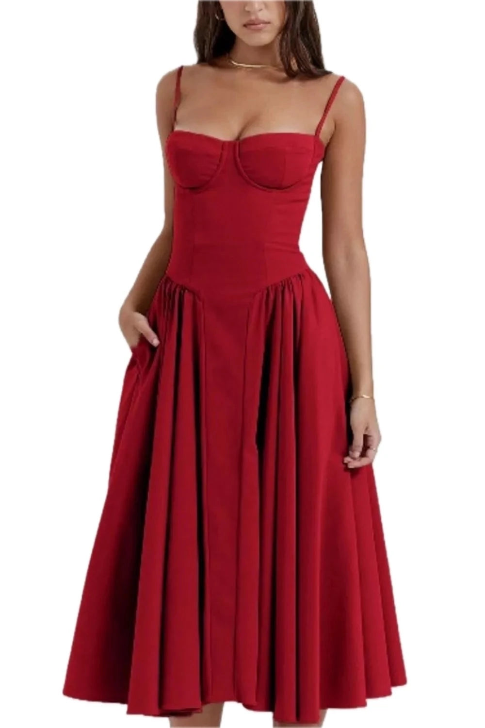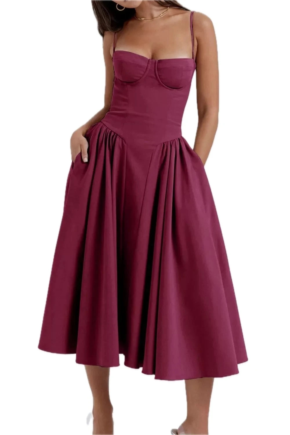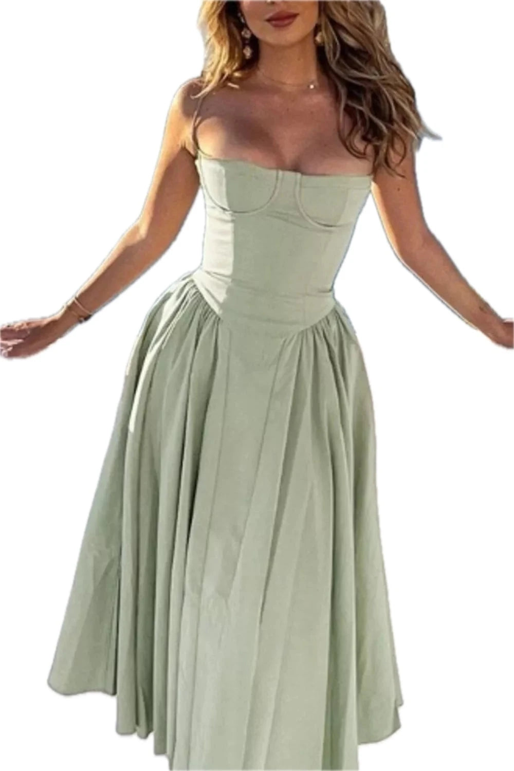 Women's Sweetheart Neck Ruched Midi Dress 100% Polyester Lightweight Fabric for Party and Evening Occasions Silhouette