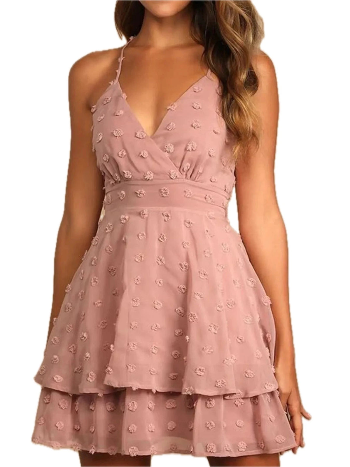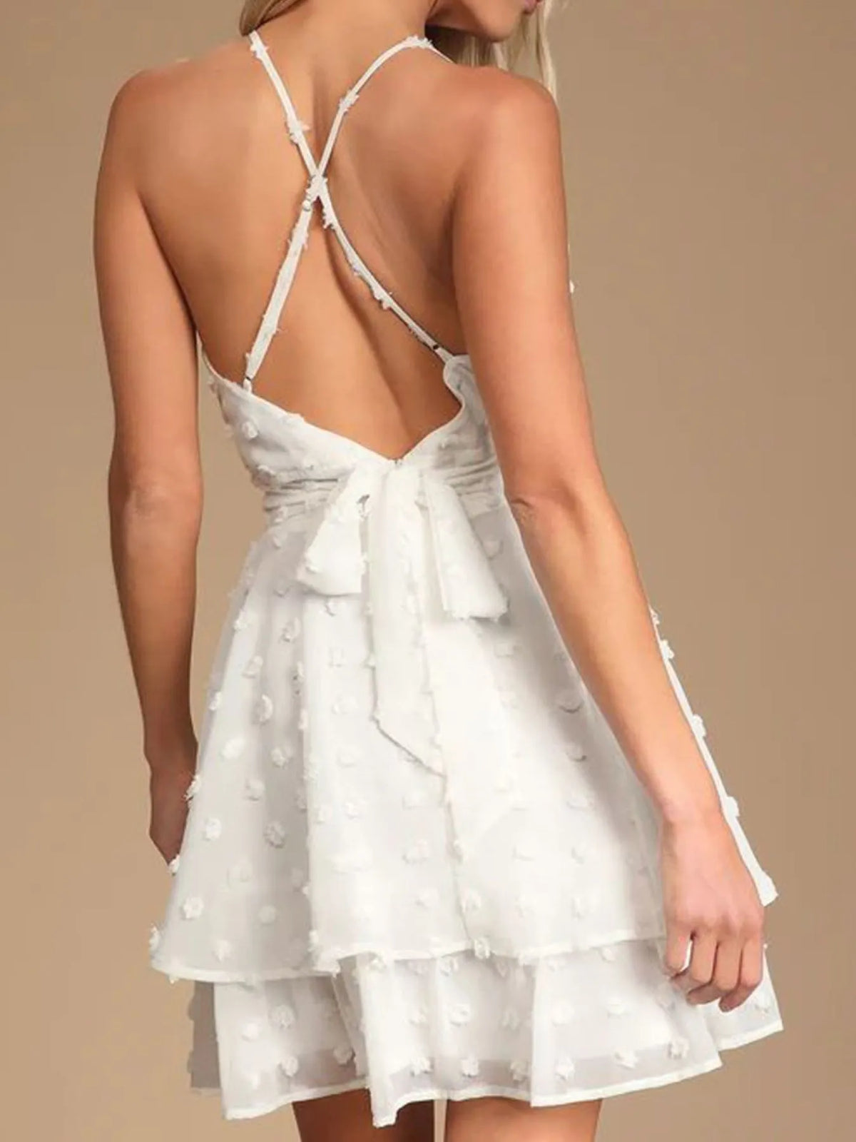 Women's Swiss Dot V Neck Cami Dress with Crisscross Ties and Stretchless Silhouette 95% Polyester 5% Spandex Chic