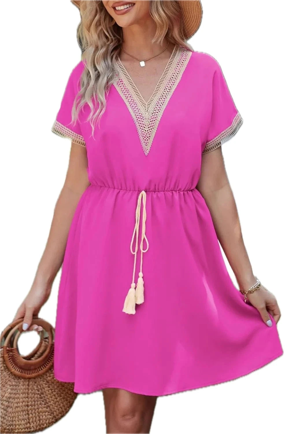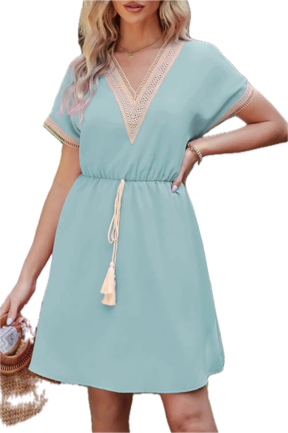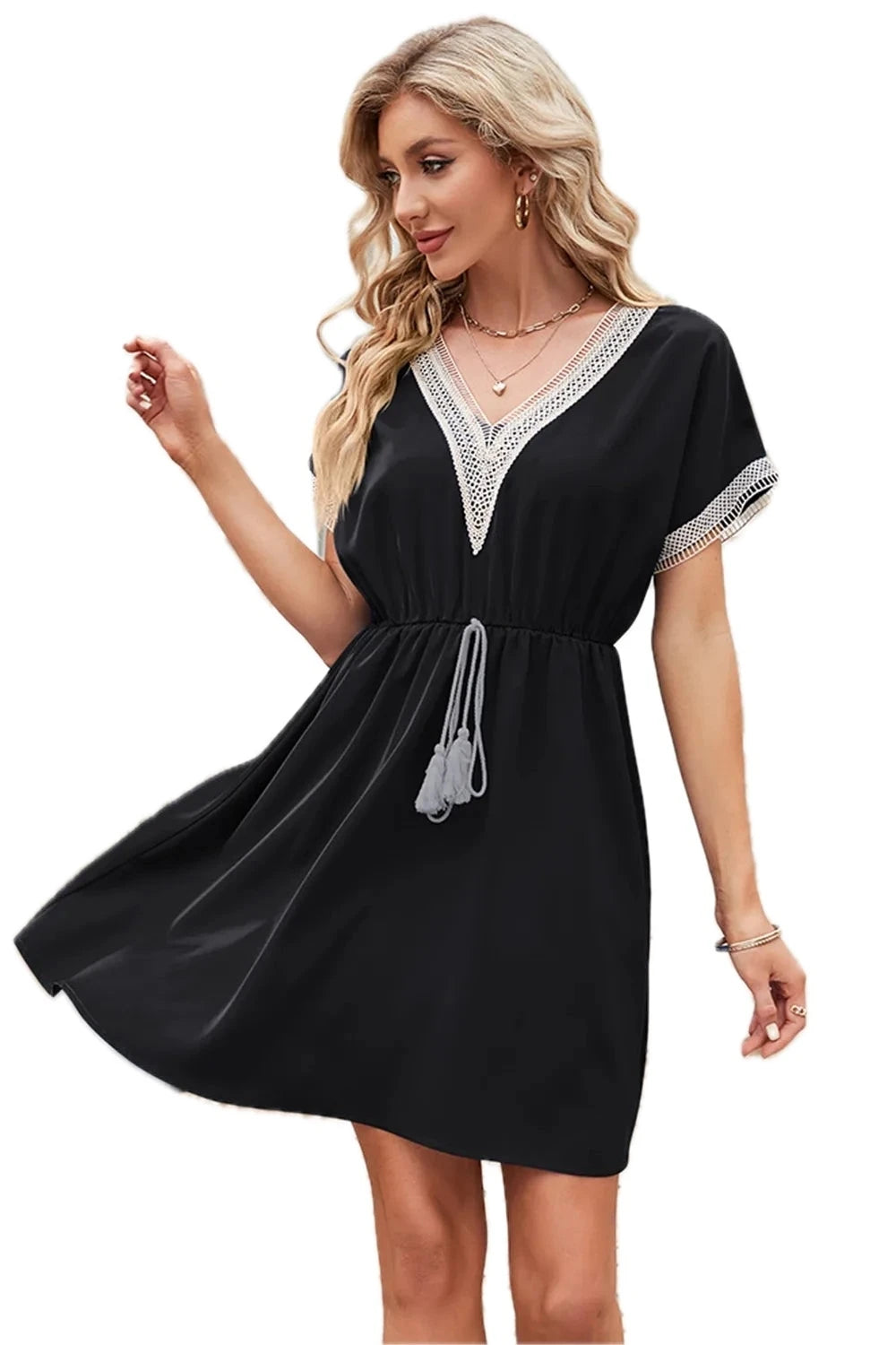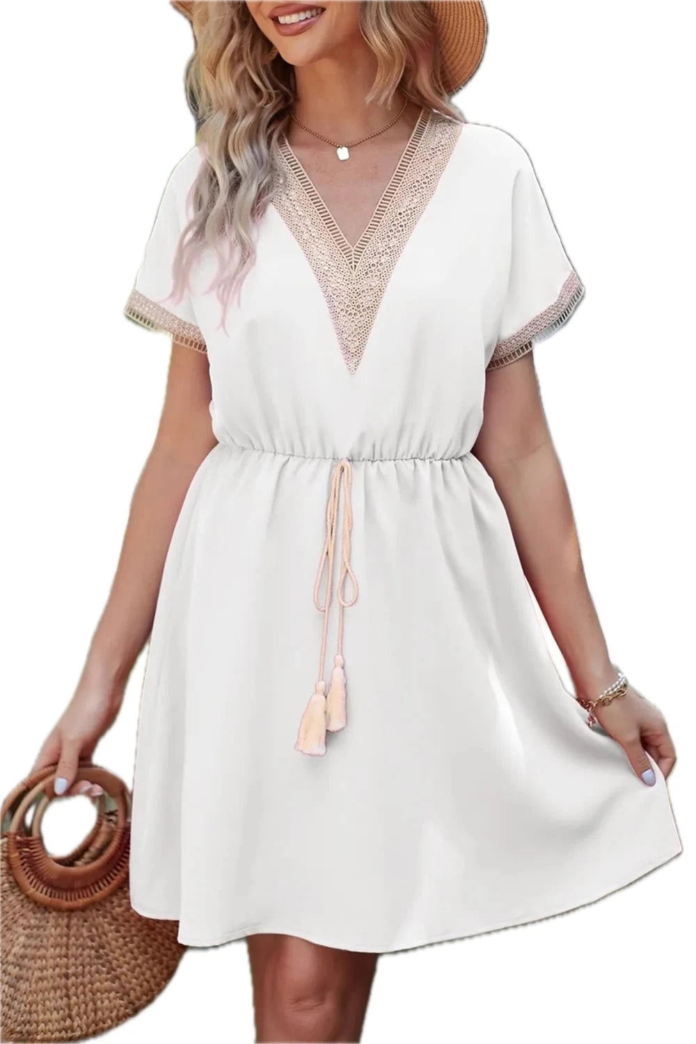 Men's Tassel V Neck Short Sleeve Dress 65% Cotton 35% Polyester Lightweight Comfortable for Everyday Wear Easy Care