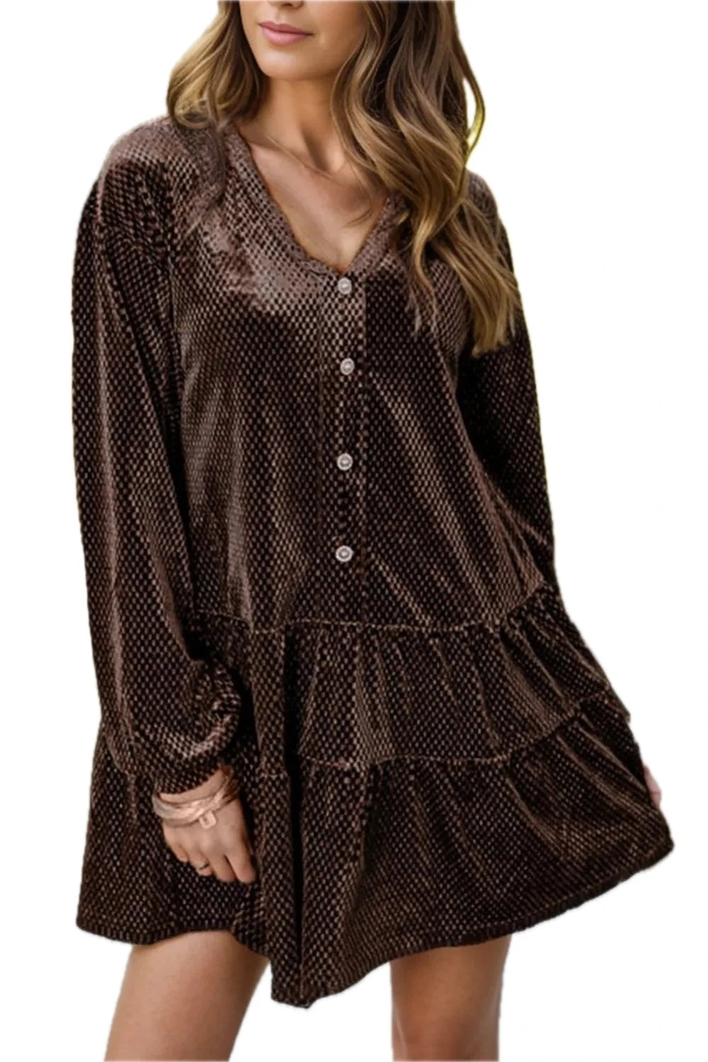Women's Textured V Neck Long Sleeve Mini Dress For Day Night Events 85% Polyester 10% Metallized Fibres 5% Elastane