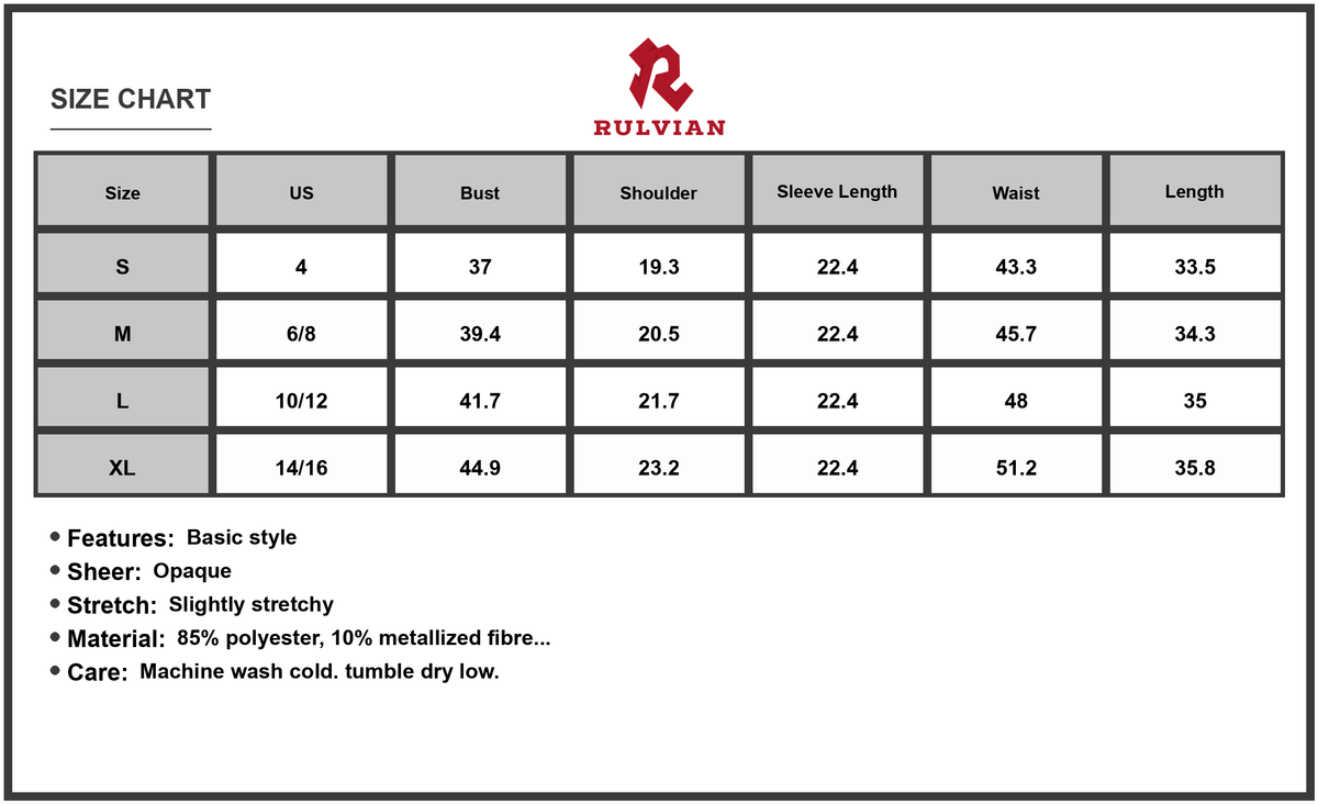 Size | US | Bust | Shoulder | Sleeve Length | Waist | Length |