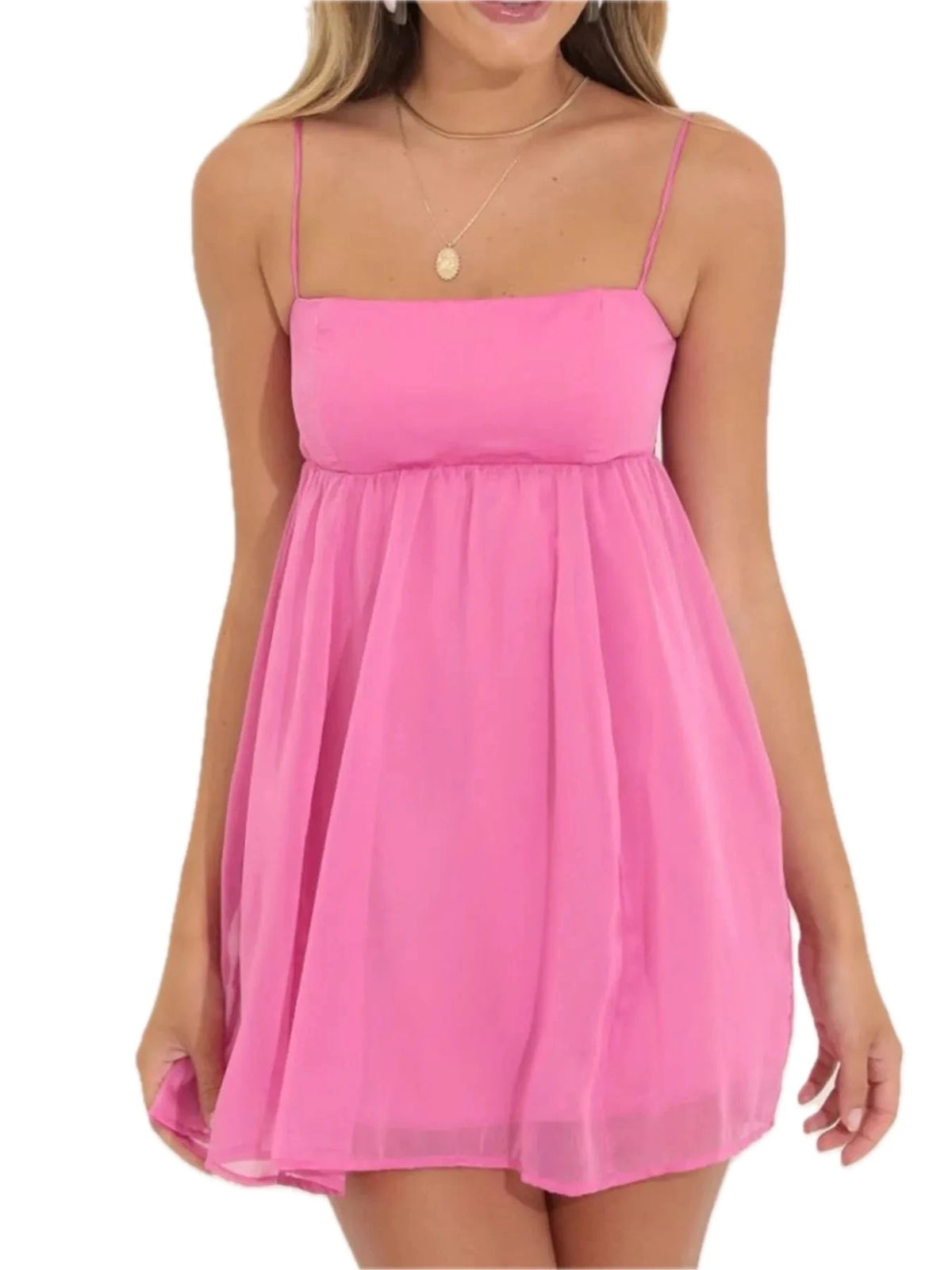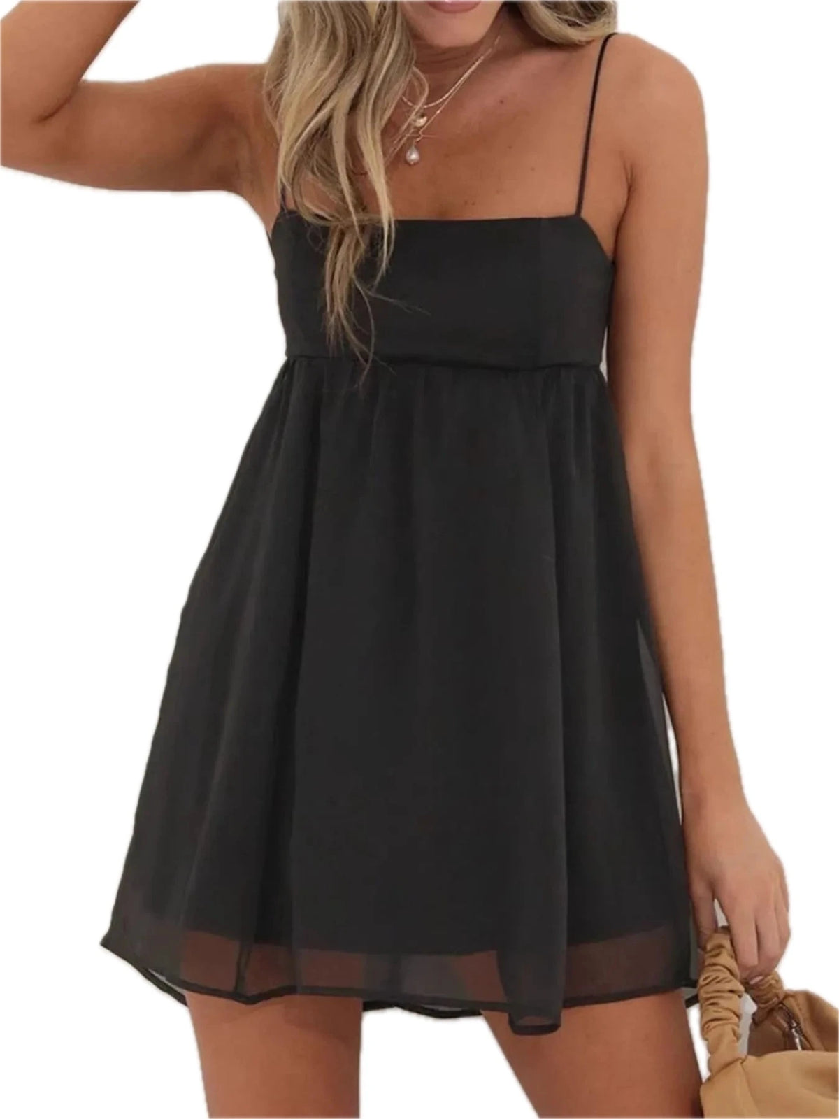 Women's Tie Back Spaghetti Strap Mini Dress 100% Polyester Fabric Lightweight Flowy Summer Outfit for Casual Days