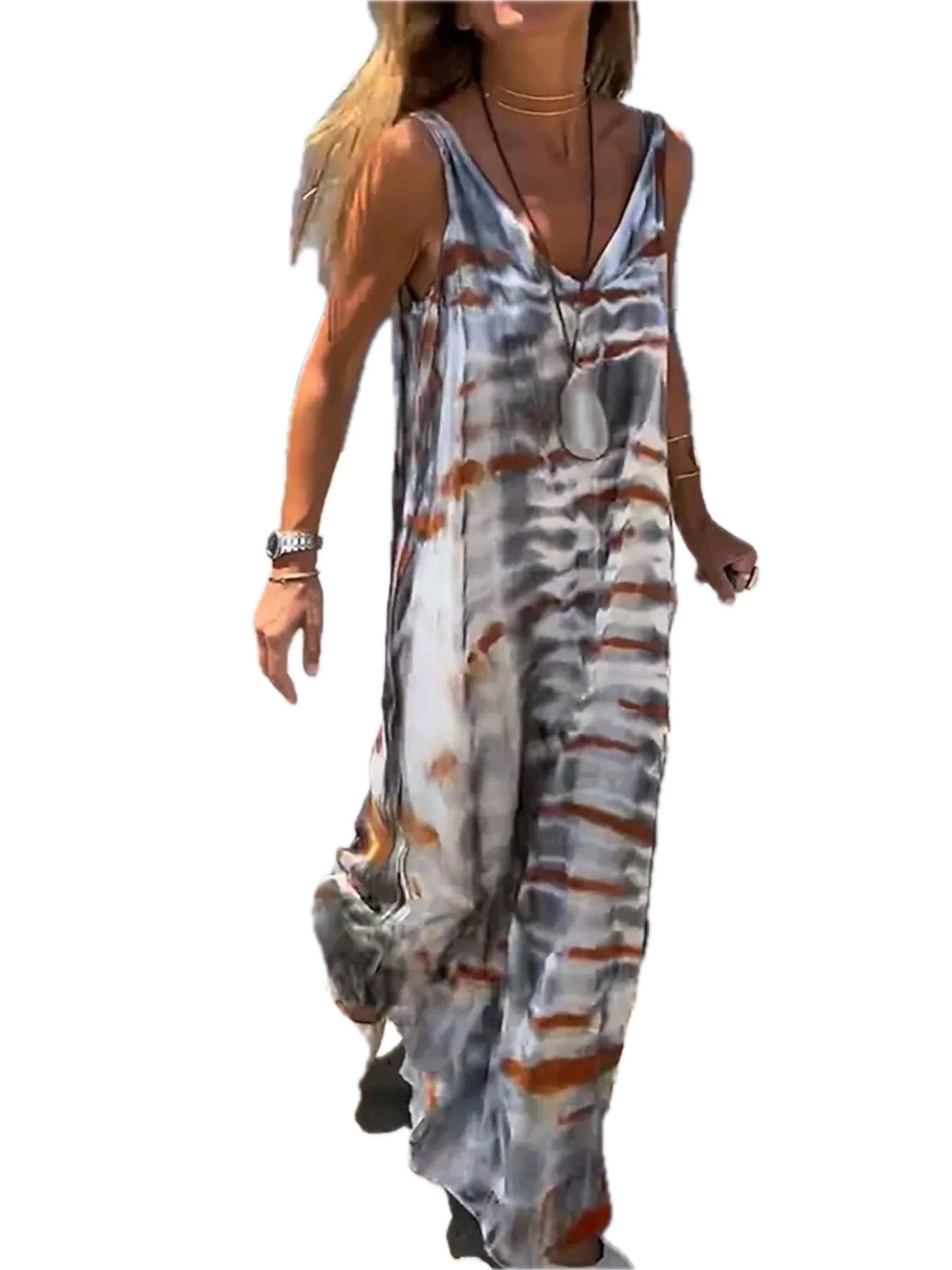 Women's Tie Dye V Neck Maxi Cami Dress with Stretch Ninety Five Percent Cotton Five Percent Spandex Soft Breathable