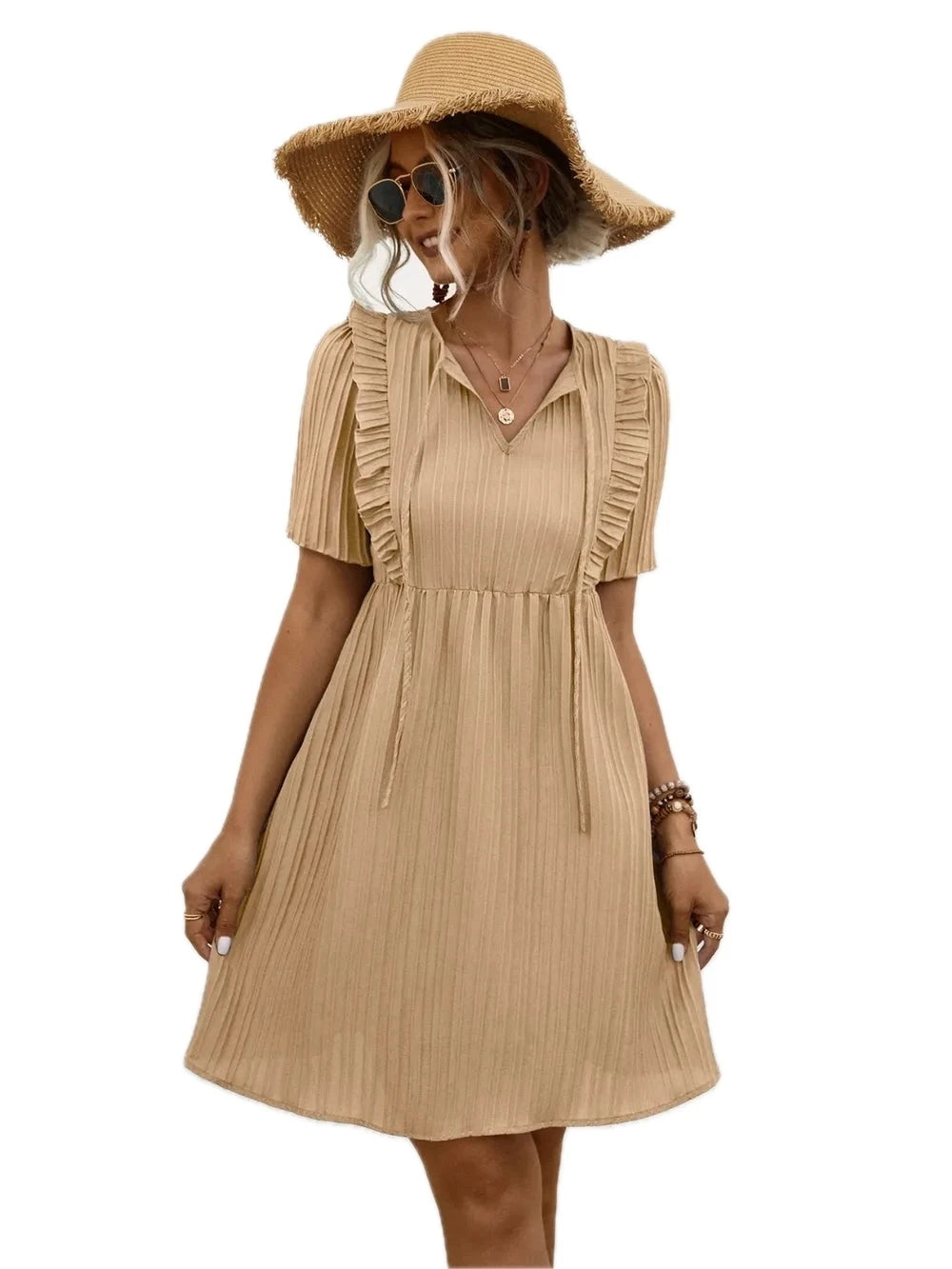 Womens Tie Neck Short Sleeve Mini Dress Ninety five percent polyester and five percent elastane Lightweight Chic Summer