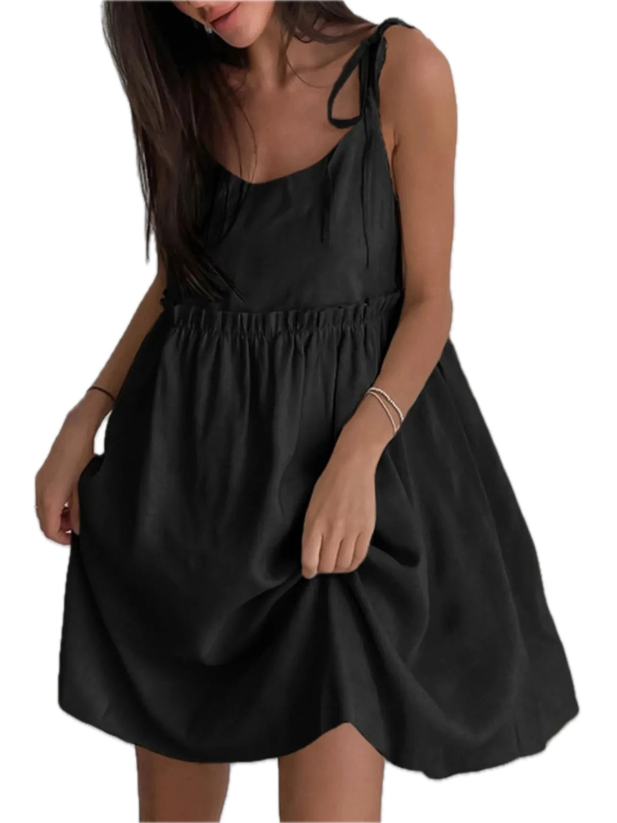Women's Tie Shoulder Frill Mini Dress 97% cotton 3% spandex Lightweight Breathable Casual Party Ready Day To Night