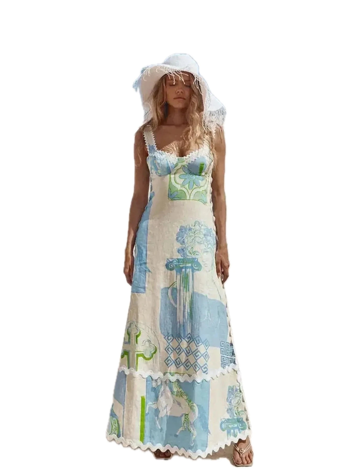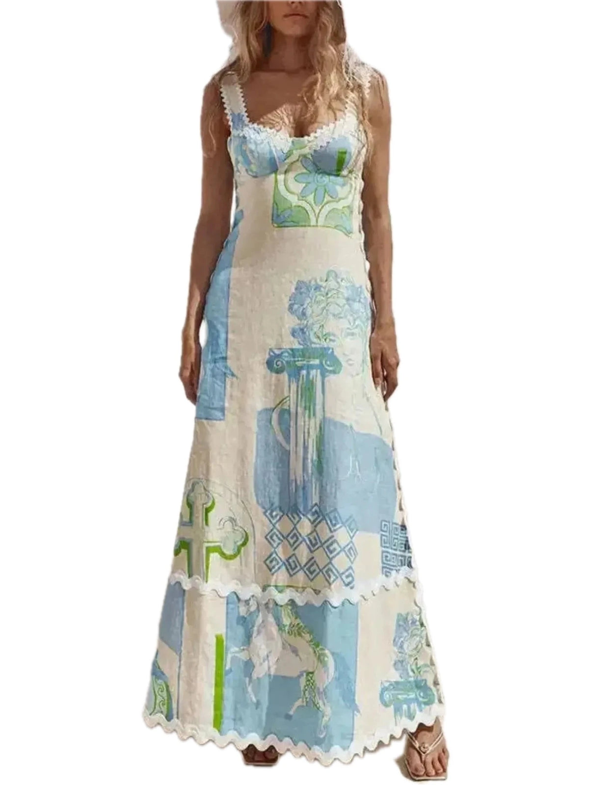 Women's Tied Back Printed Maxi Dress 100% polyester Lightweight Flowing Dress for Summer Boho Look Easy to wear