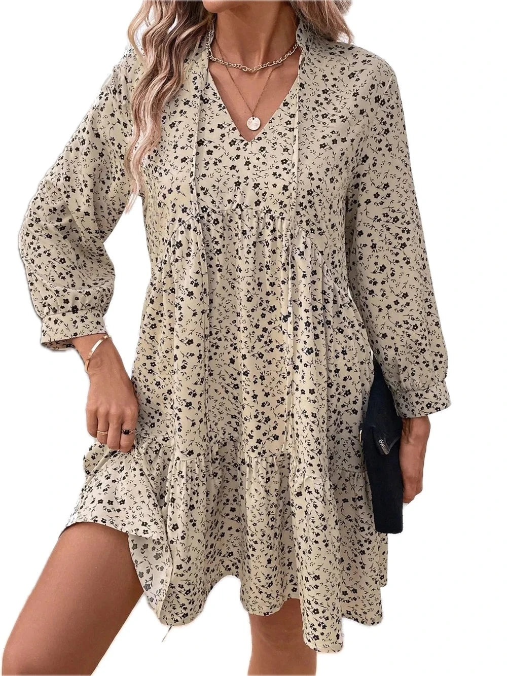 Women's Tied Printed Long Sleeve Mini Dress 95% polyester 5% spandex fabric with adjustable front tie for party wear