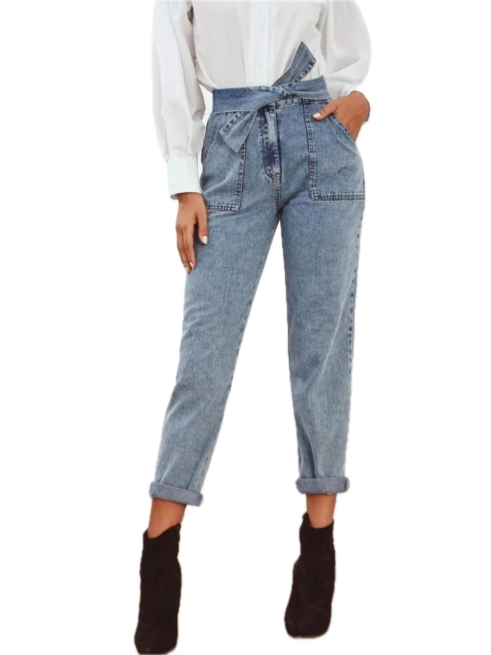 Womens Tied Straight Leg Jeans with Pockets High Waisted Casual Everyday Denim Pants Durable Modern Fit Versatile Wear