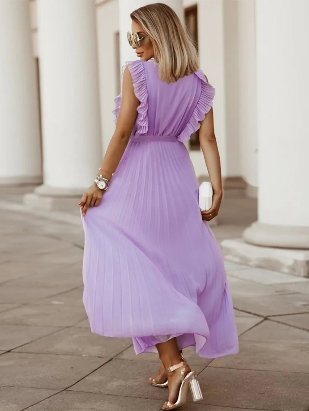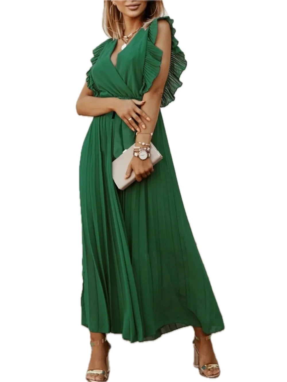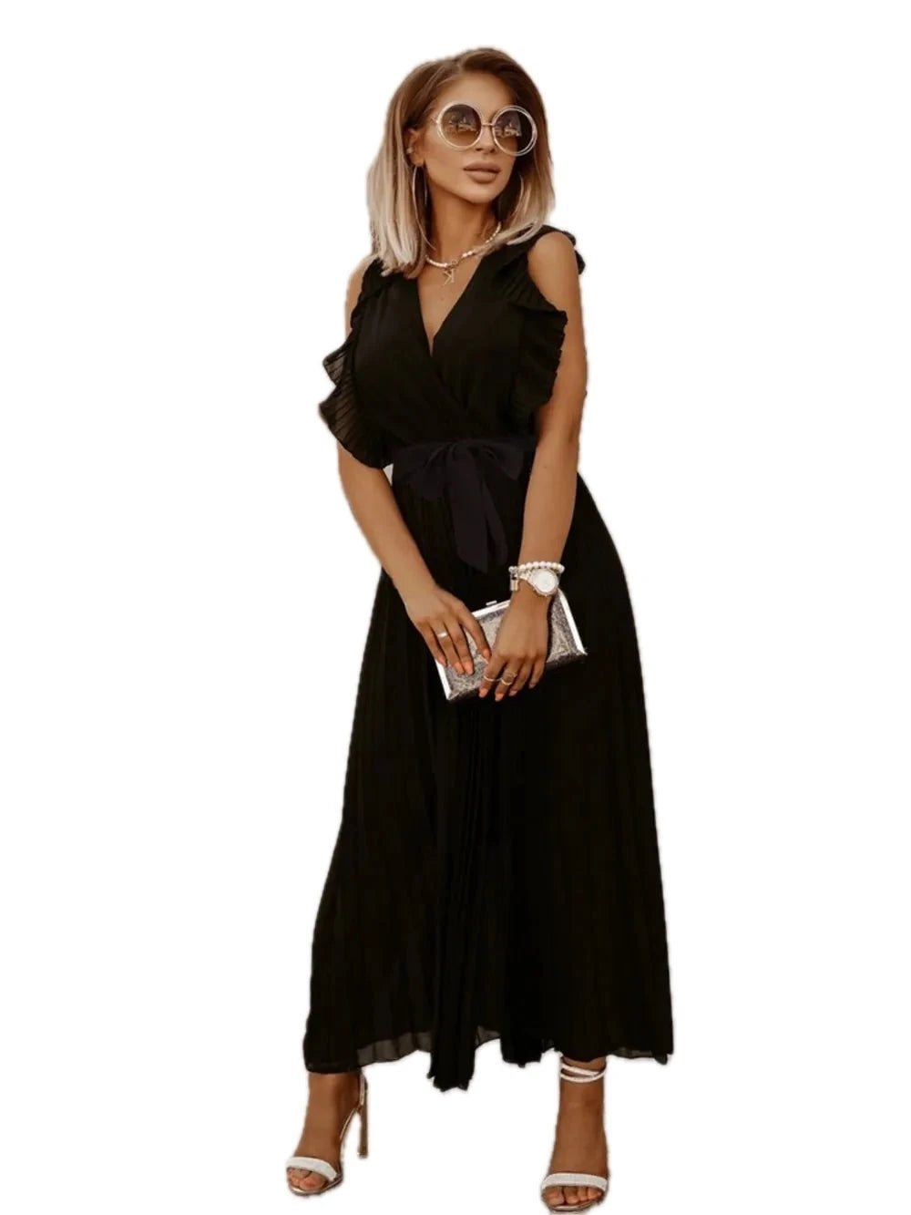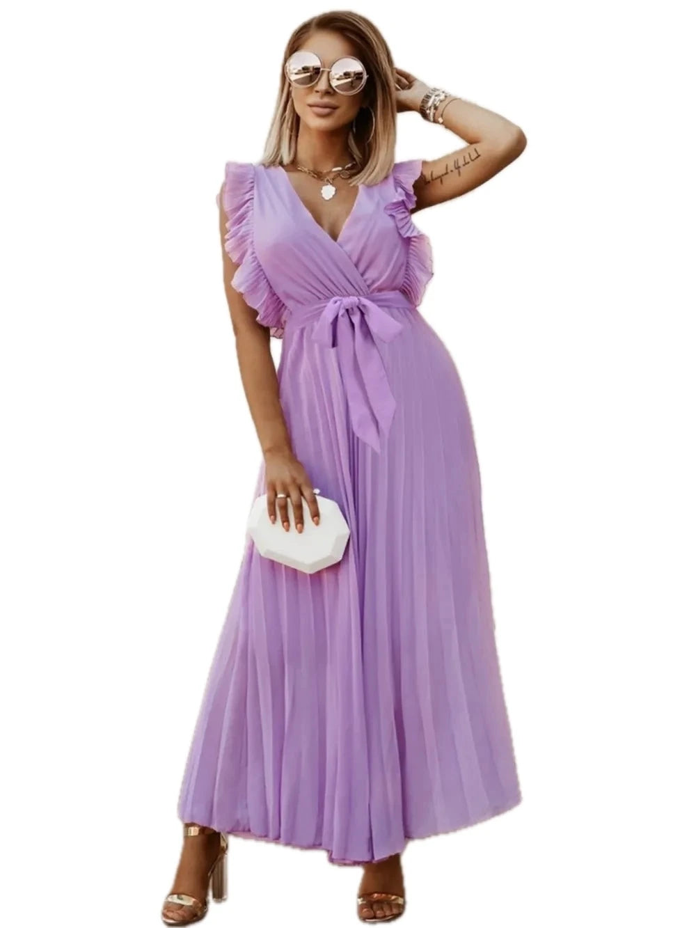 Women's tied surplice cap sleeve pleated dress 95% polyester 5% spandex fabric machine wash cold tumble dry low