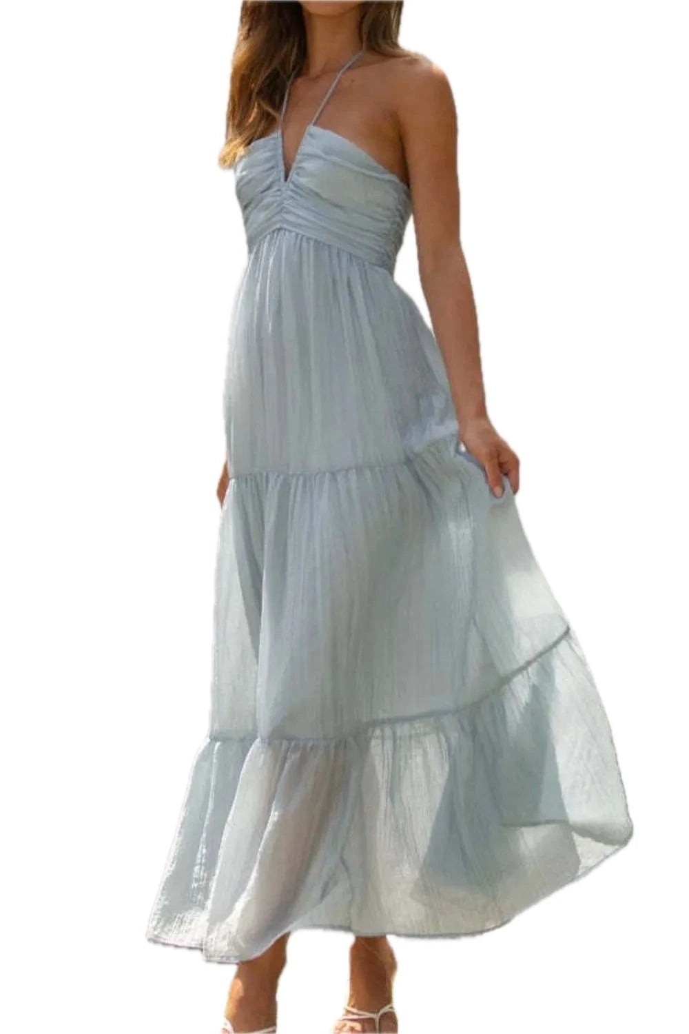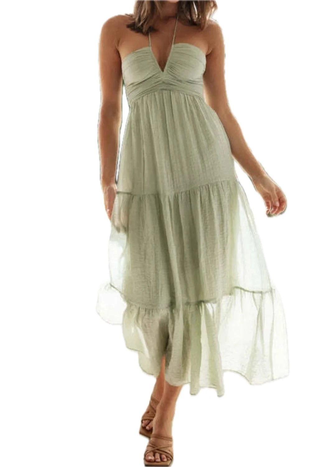 Women's Tiered Halter Neck Cami Dress with Ruching and Lined Bodice 95% Polyester and 5% Spandex for Daytime Events
