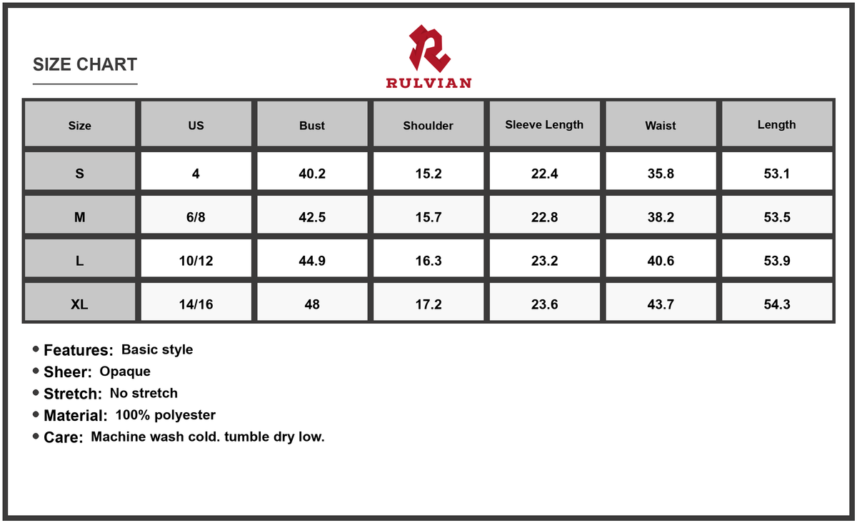 Size | US | Bust | Shoulder | Sleeve Length | Waist | Length |