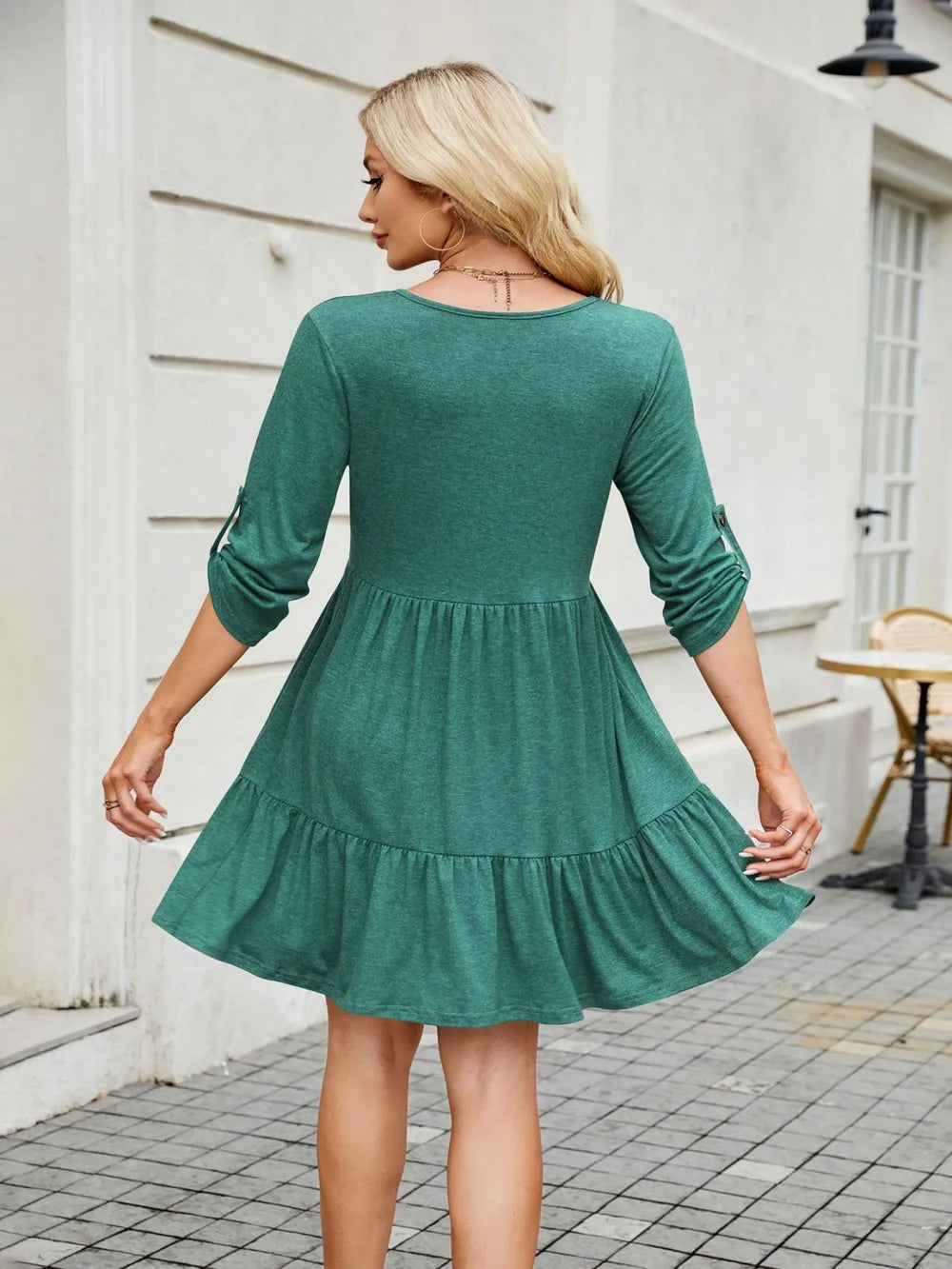 Men's Tiered Ruched V Neck Mini Dress 65% rayon 30% polyester 5% spandex Not lined Moderate stretch Imported