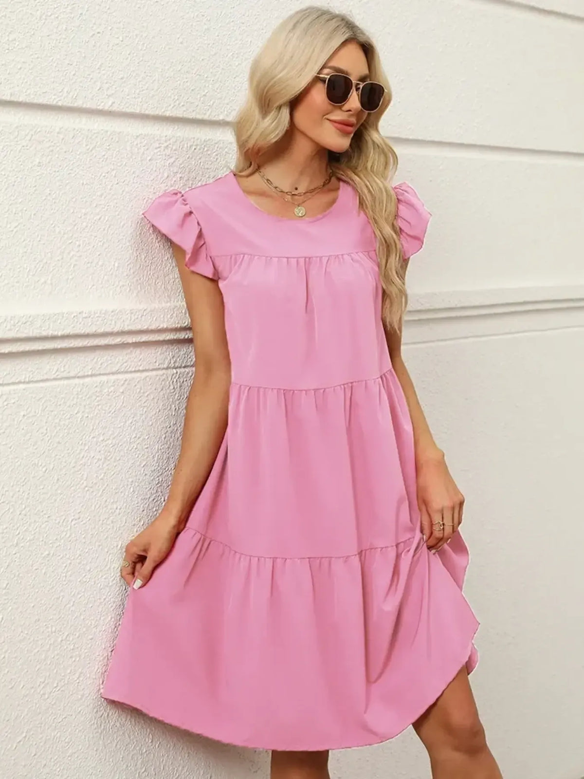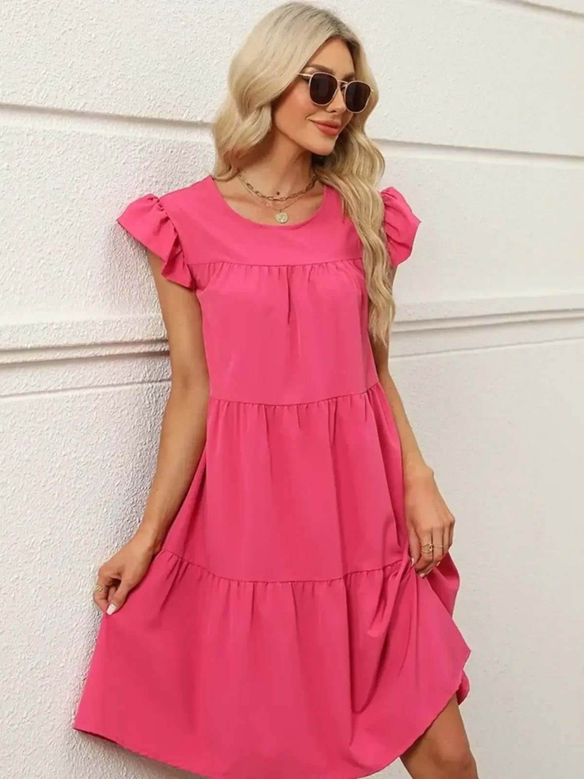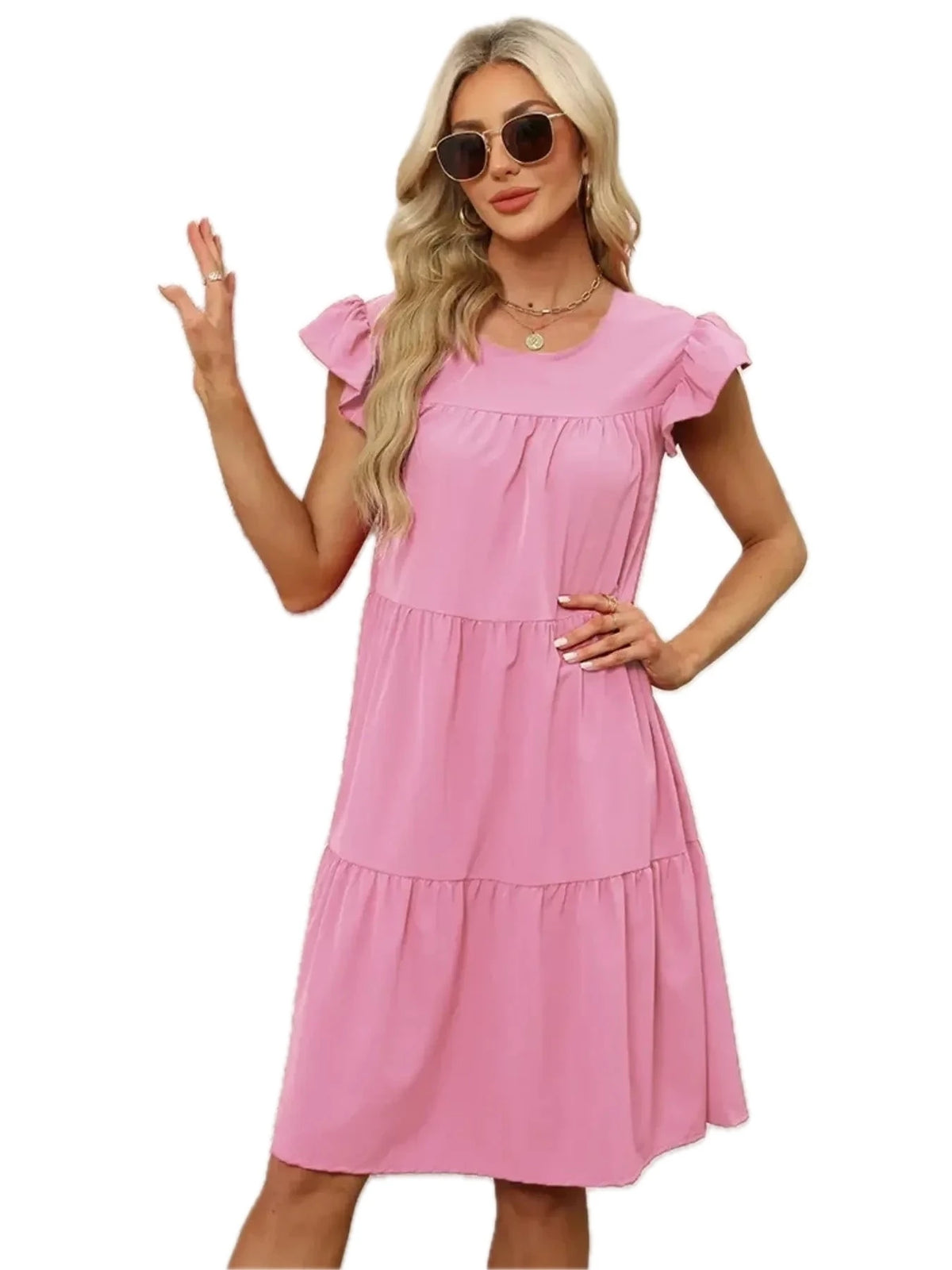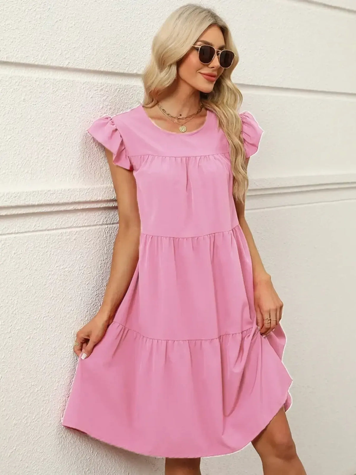 Women's Tiered Ruffle Sleeve Mini Dress 100% Polyester Lightweight Chic Elegant Party Dress for Cocktail Evening Wear