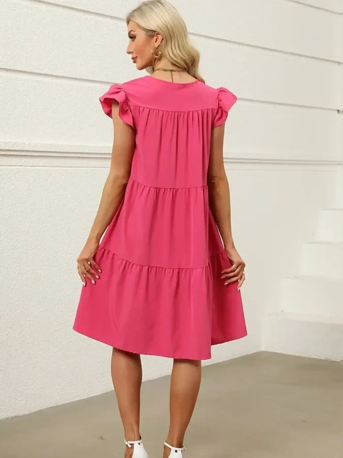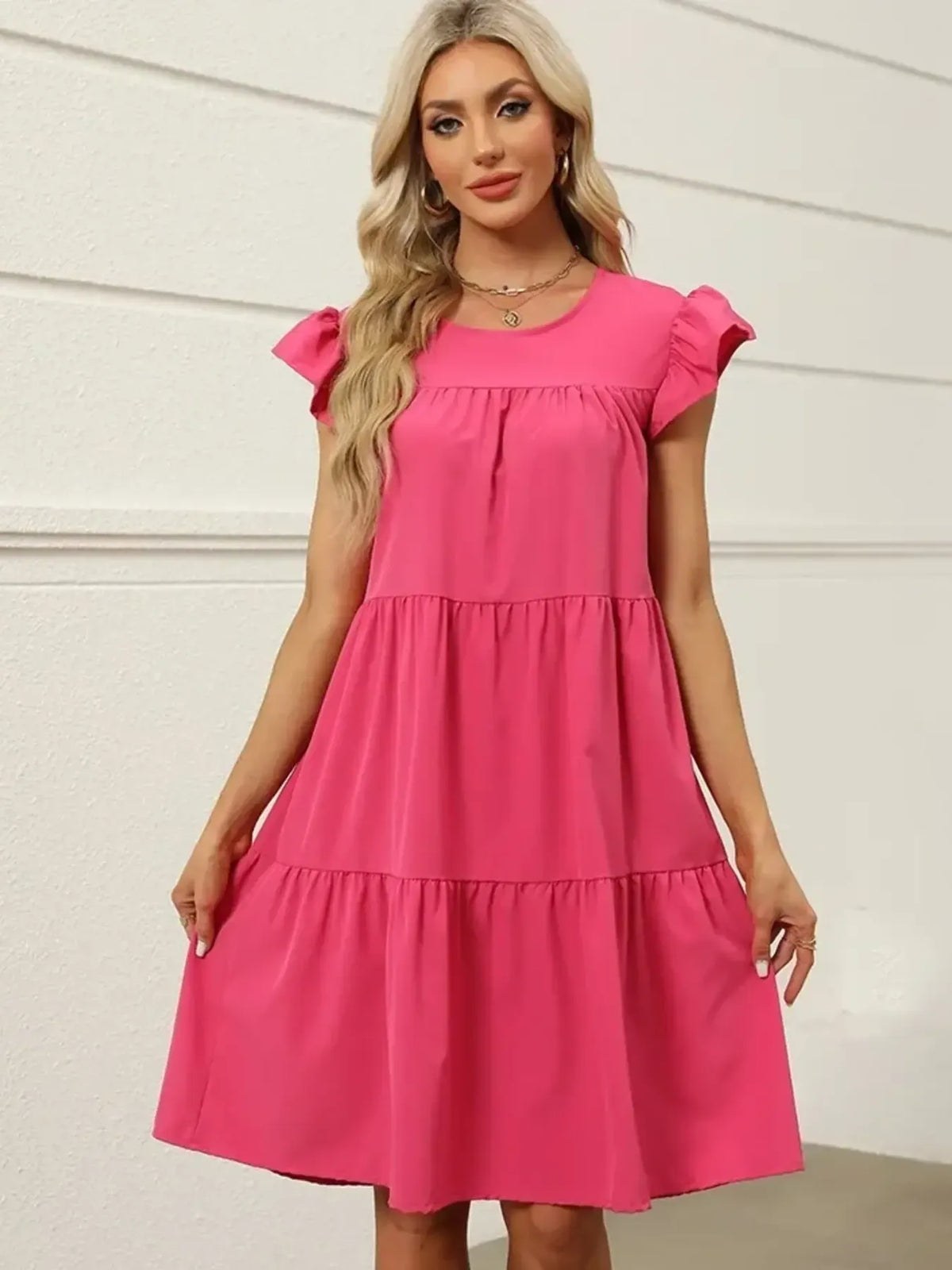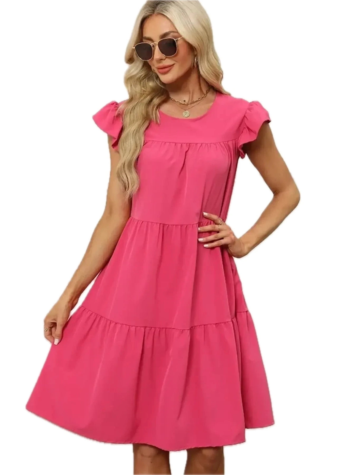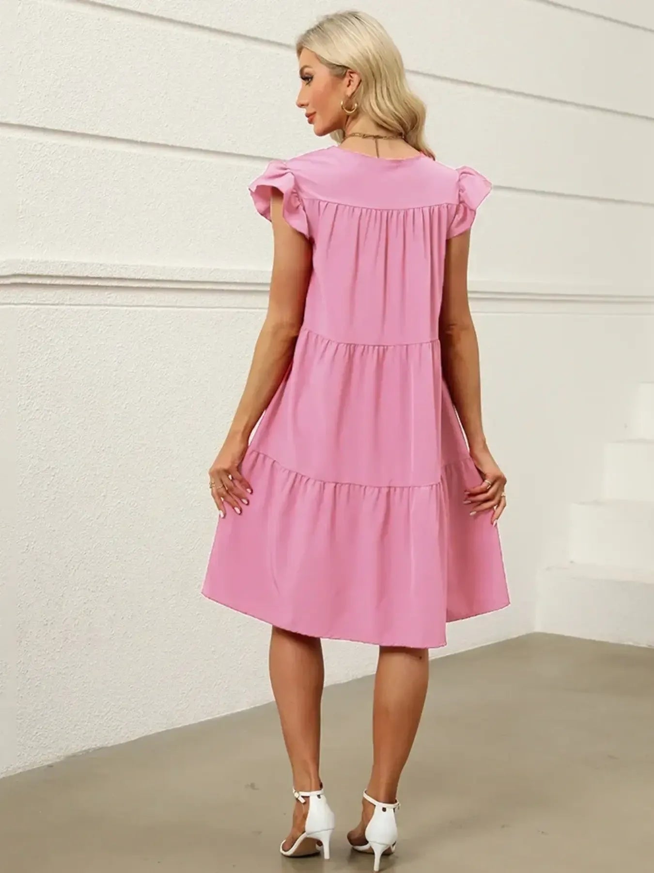 Women's Tiered Ruffle Sleeve Mini Dress 100% Polyester Lightweight Chic Elegant Party Dress for Cocktail Evening Wear