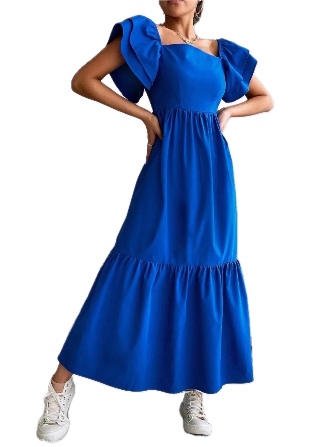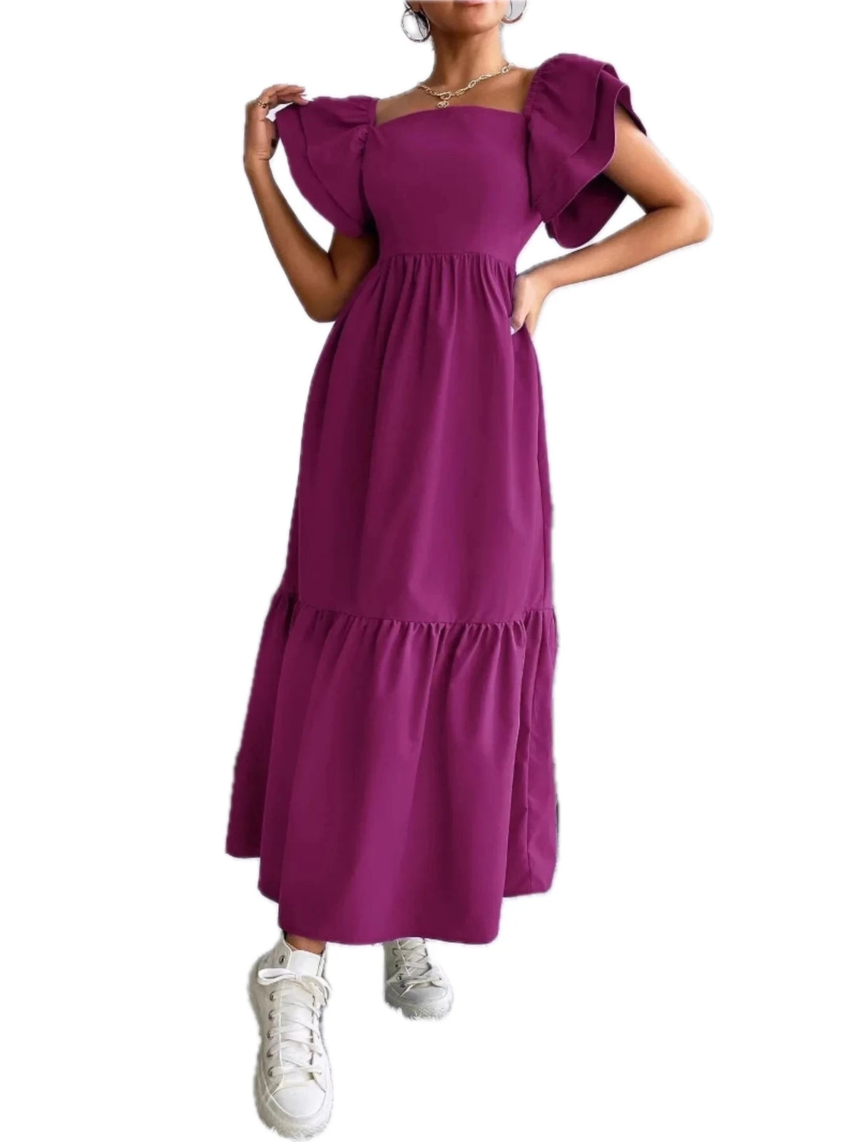 Women's Tiered Square Neck Maxi Dress with Ruffles Slightly Stretchy Body Not Lined Fabric 100% Polyester For Summer