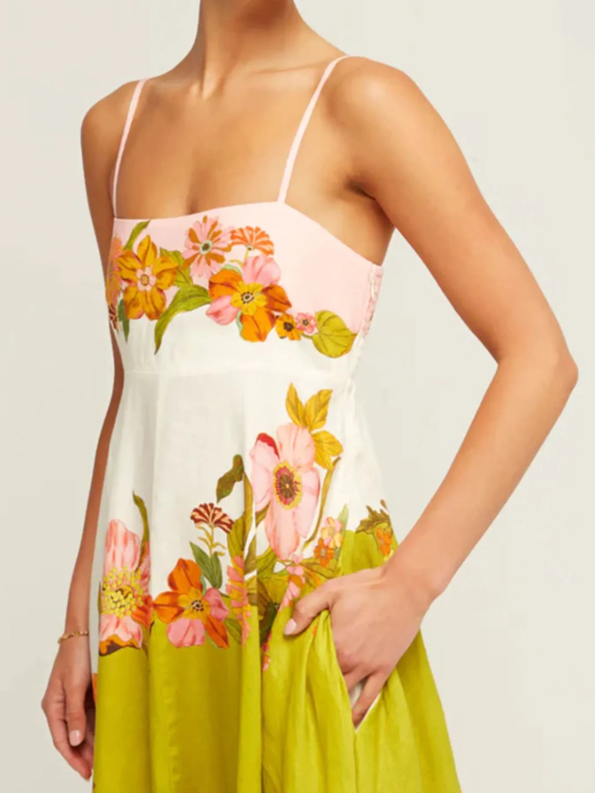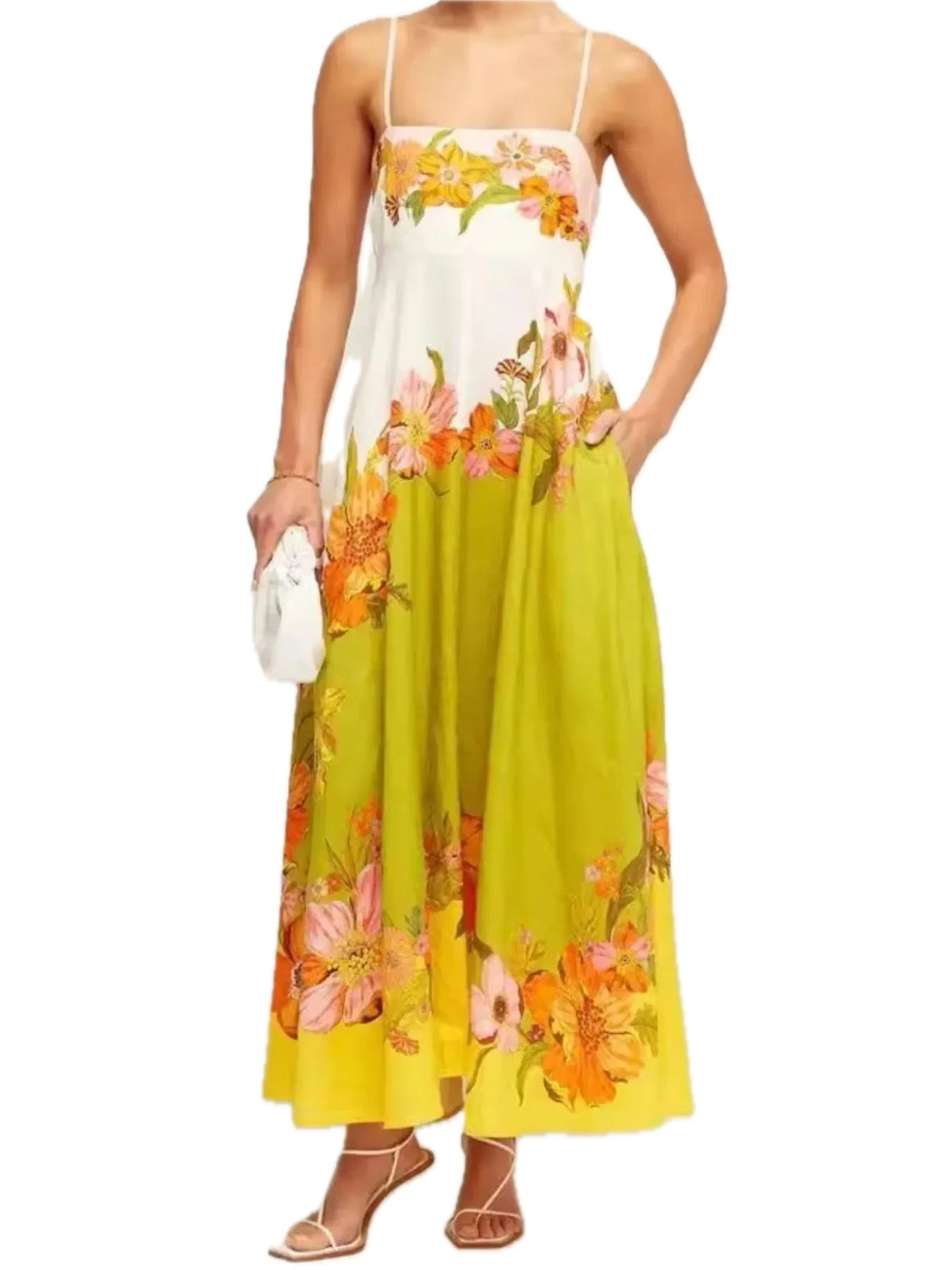 Women's Tropical Floral Gradient Maxi Cami Dress with Polyester % Fabric Lightweight Flowing Silhouette for Summer